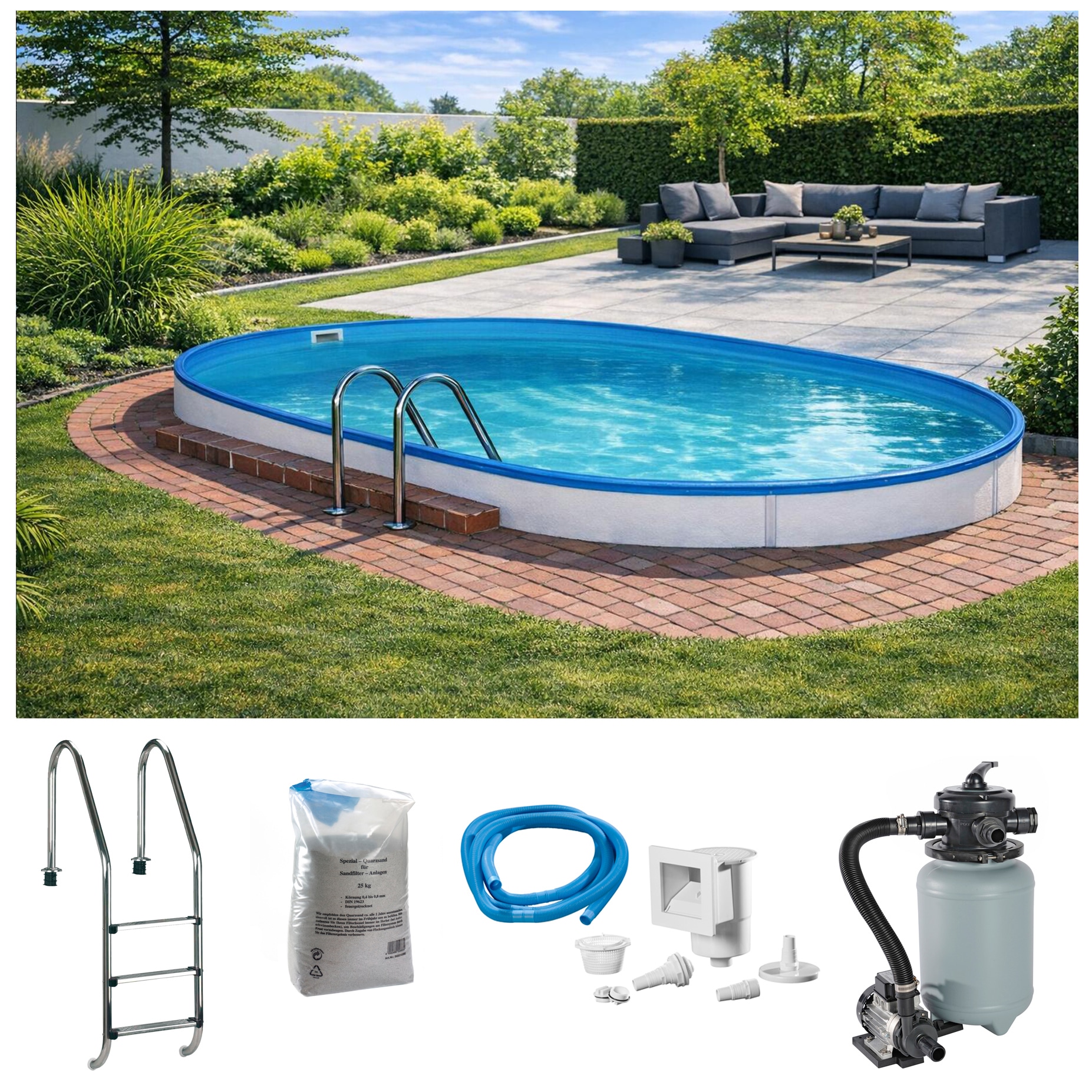 Neu - Ovalpool »PANAMA 4« inkl. umfangreichem Zubehör zur sofortigen Inbetriebnahme des PoolsKONIFERAUrsprünglicher PreisUVP 1.599,00 €Rabatt- 110,08 €Aktueller Preisab 1.488,92 €