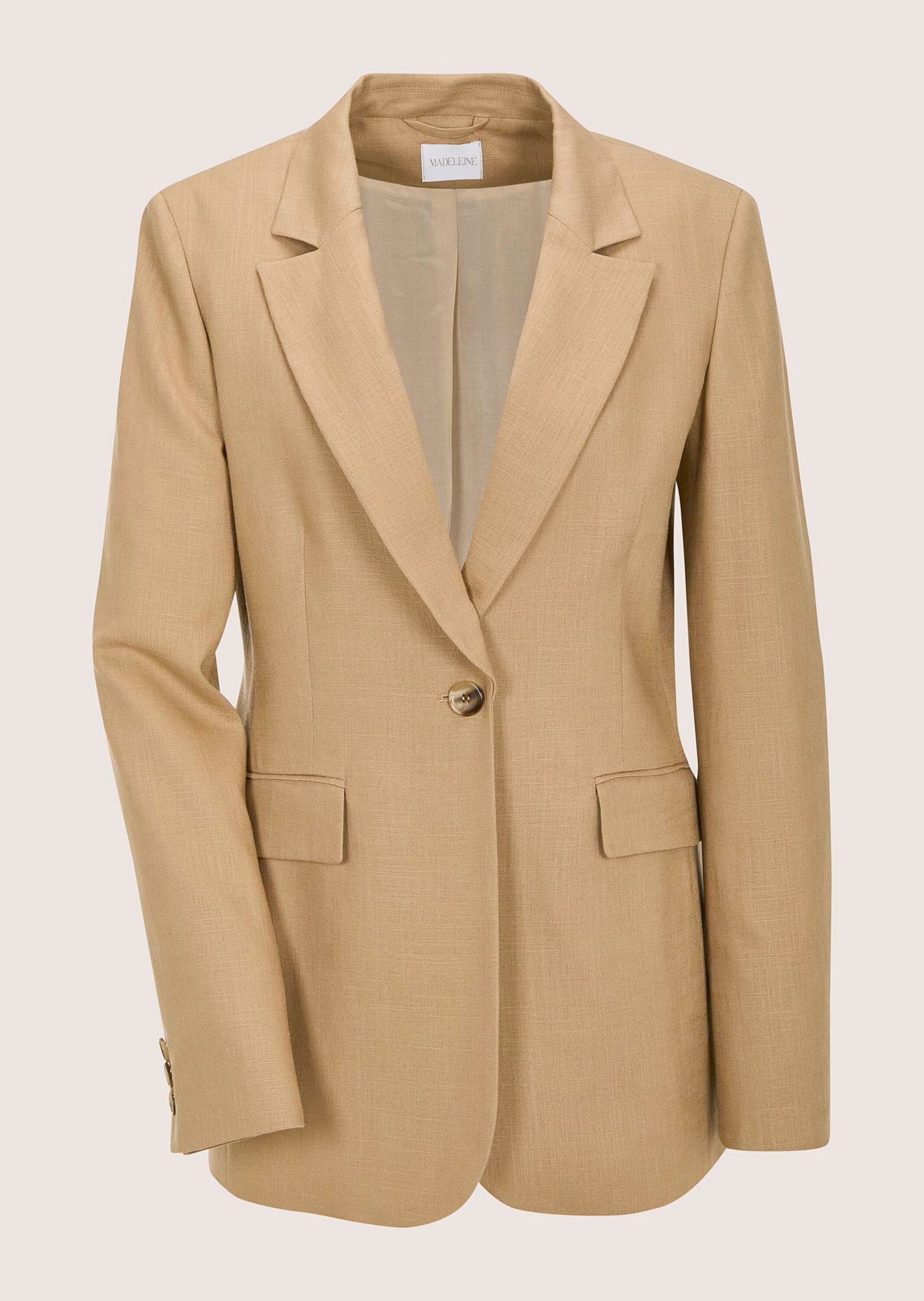 - Jackenblazer »Kurzblazer Eleganter Einreiher mit Reverskragen« Dezenter Melange-EffektMADELEINEAktueller Preis312,99 €