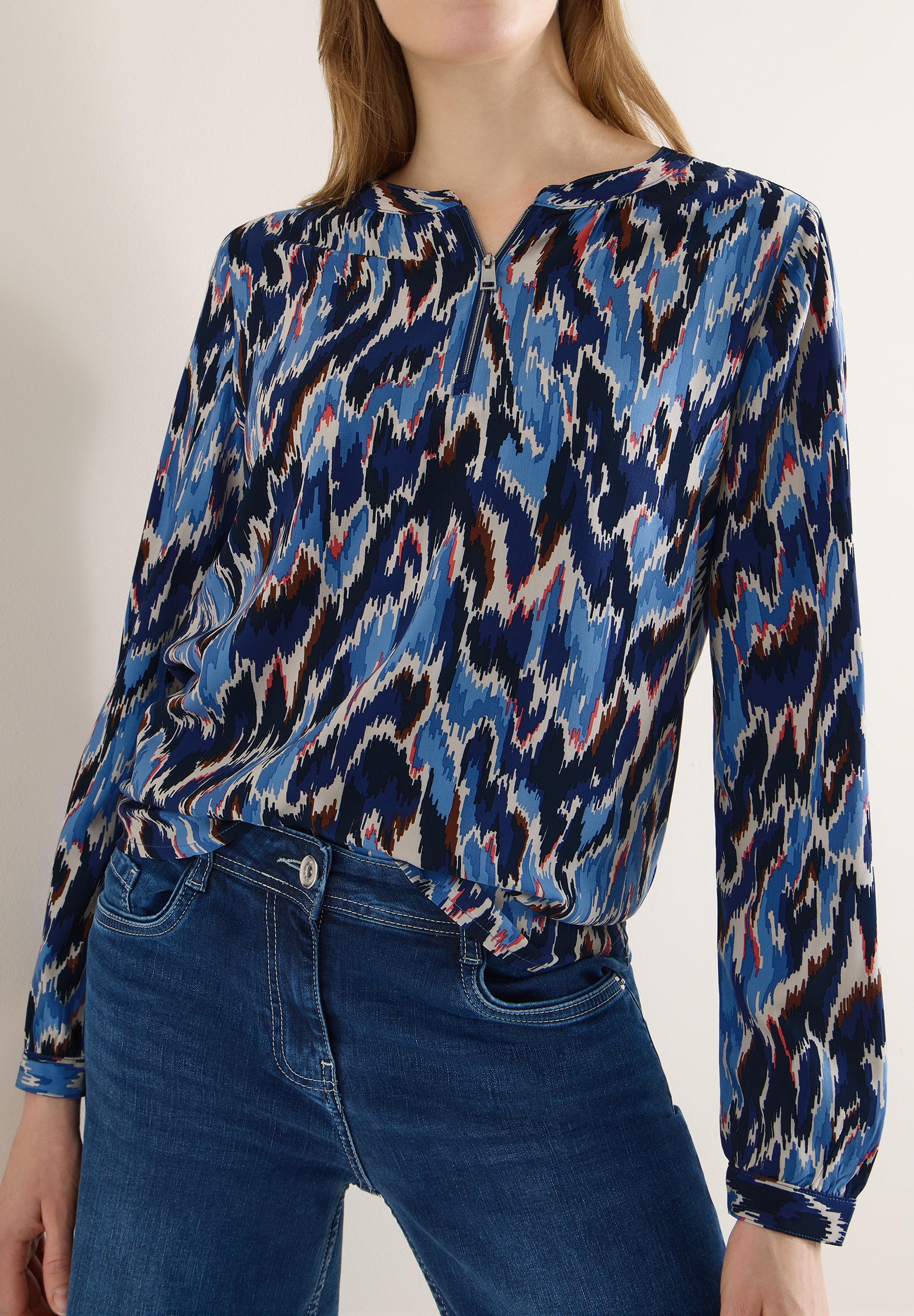 Neu+ Farben - Langarmbluse mit grafischem Print und ReißverschlussCecilUrsprünglicher PreisUVP 39,99 €Rabatt- 5 %Aktueller Preisab 37,99 €