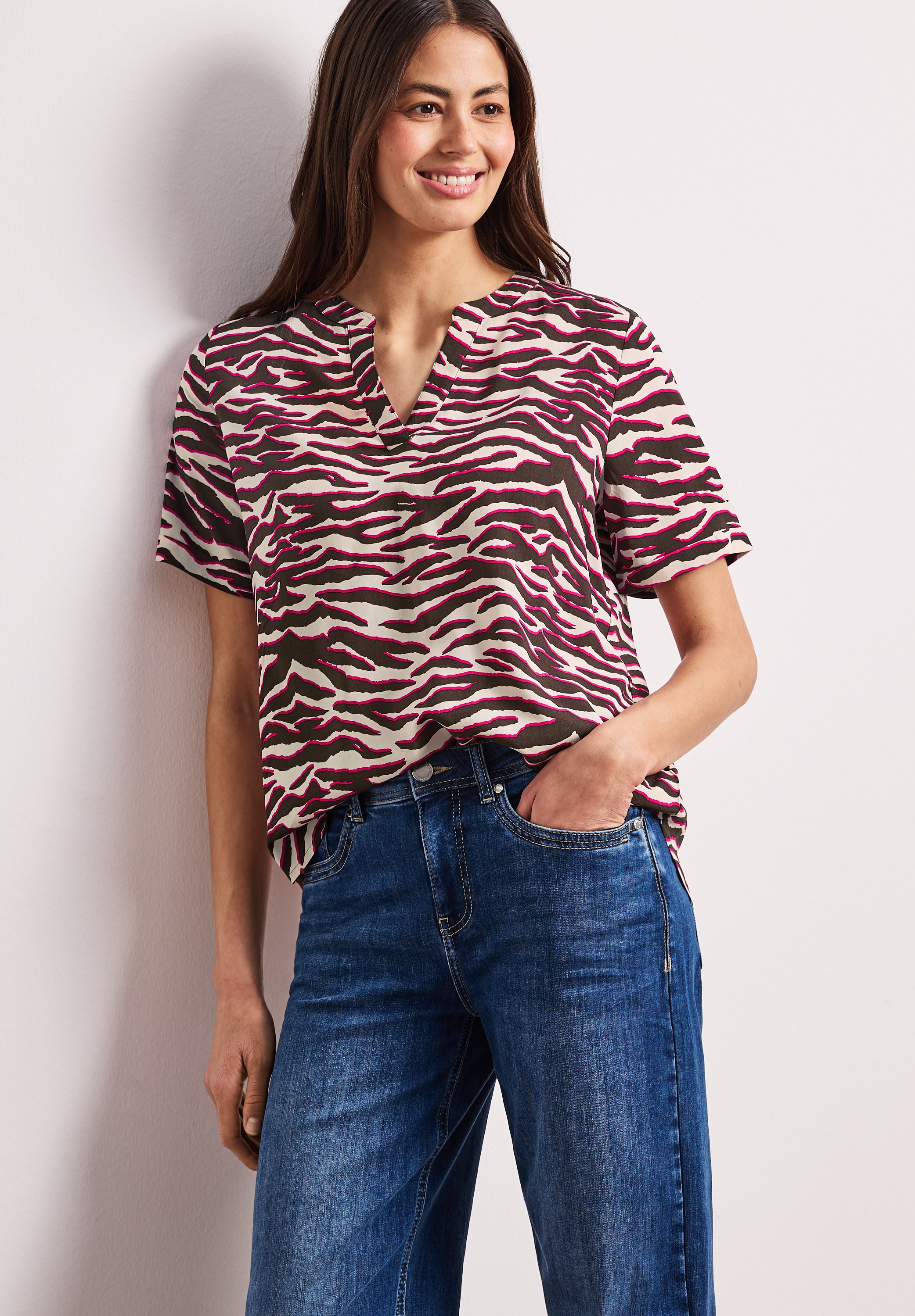 Neu - Druckbluse Sommerbluse mit Split Neck und PrintSTREET ONEAktueller Preis39,99 €