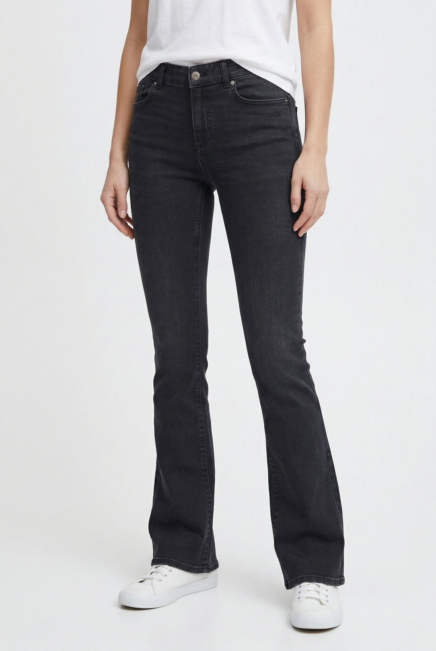 Das Volumen am Saum deiner Bootcutjeans für Damen harmoniert am besten mit schmal geschnittenen Oberteilen. Ein figurbetonter Body, ein feiner Rollkragenpullover oder eine in den Bund gesteckte Seidenbluse schaffen eine ausgewogene und stilvolle Gesamtoptik. Möchtest du einen weiten Pullover kombinieren, stecke ihn vorne locker in den Hosenbund, um deine Taille zu betonen.