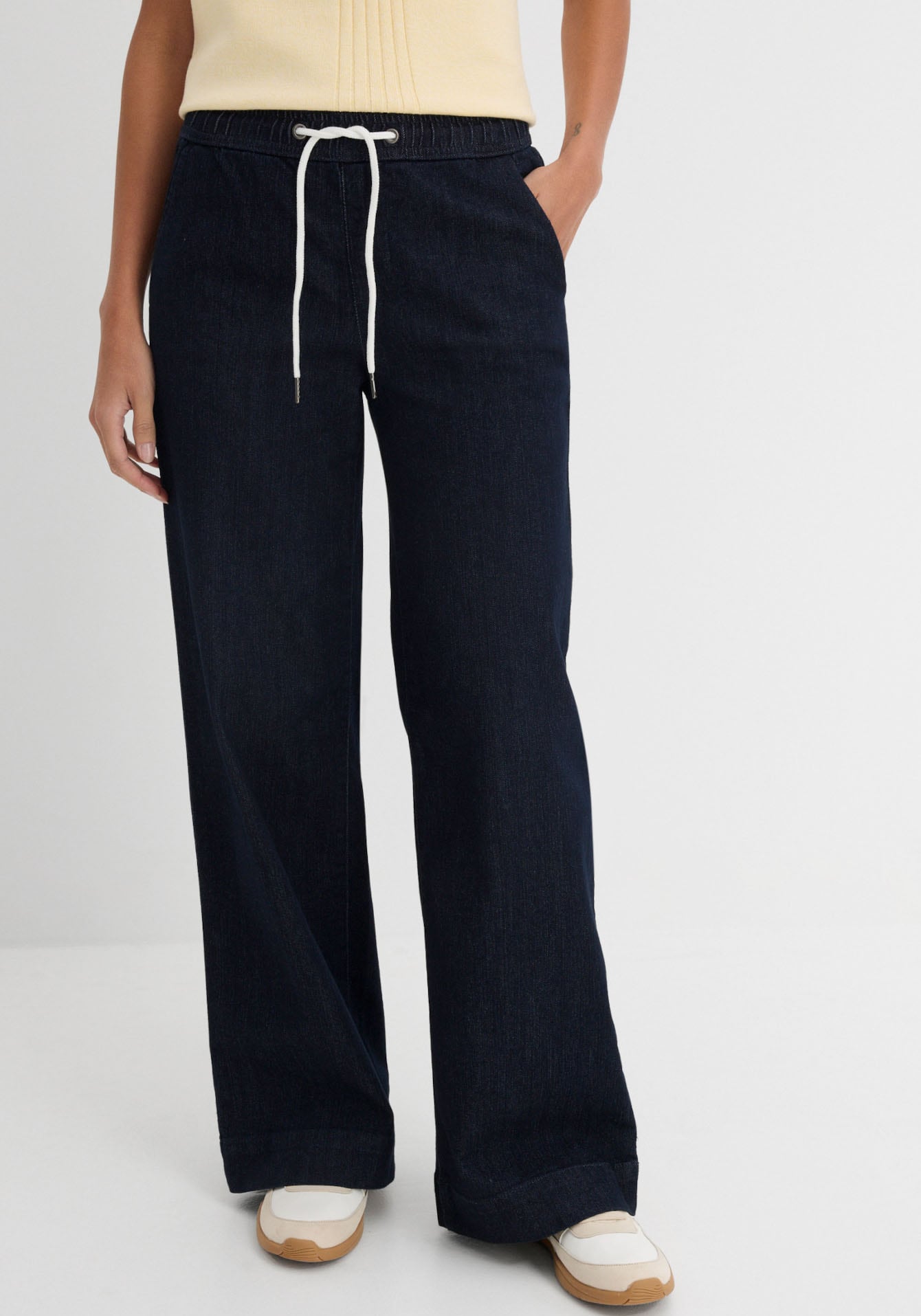 - Weite Jeans mit seitlichem Teilgummibund, mit Bindegürtel, mit breitem SaumbonprixAktueller Preisab 28,99 €