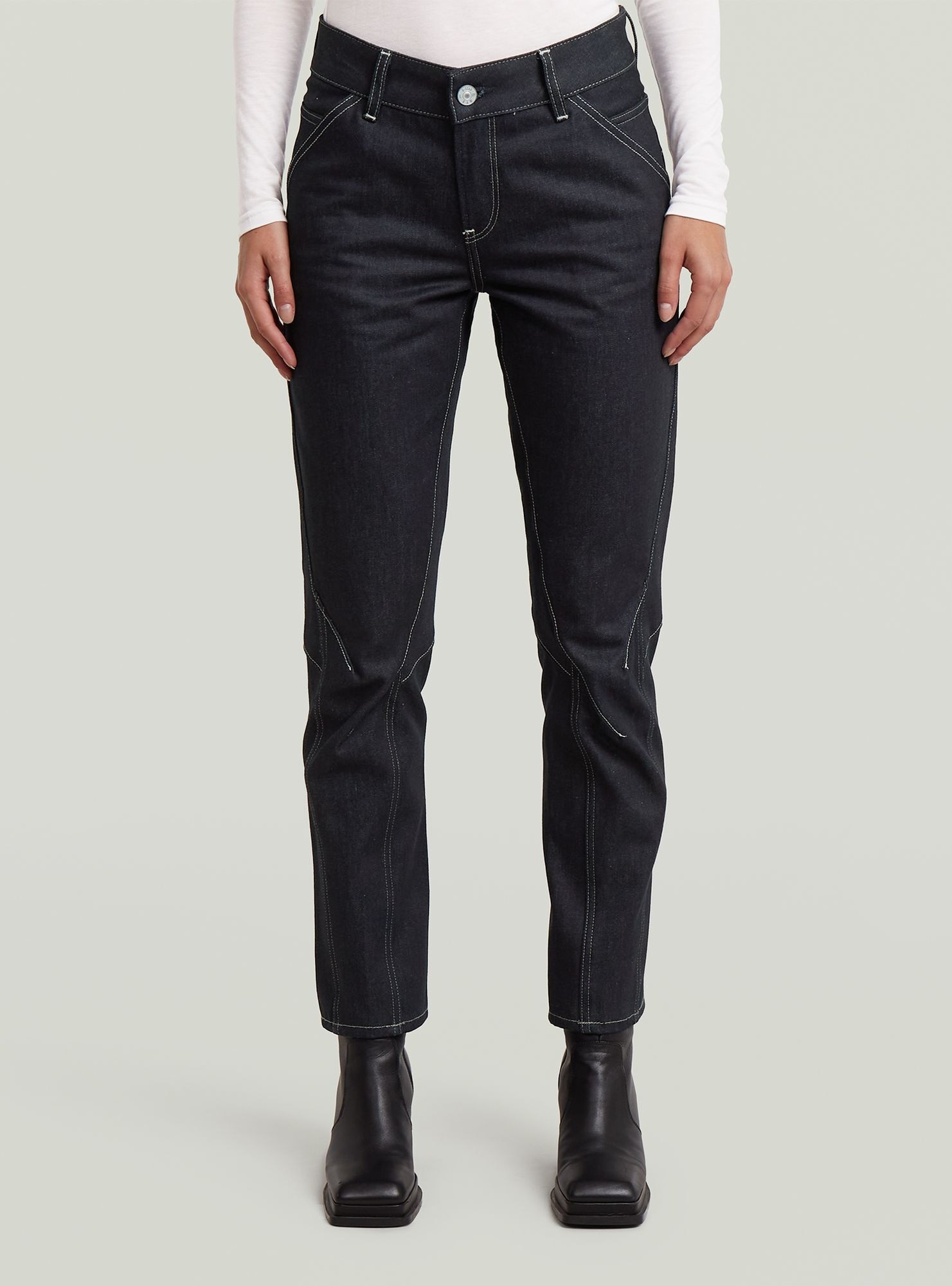 Als Alternative zur eng anliegenden G-Star Jeans bieten sich Damenhosen in gerader Form an. Sie überzeugen durch ihren lässigen Look und ihre bequeme Passform. Eine Straight-Fit-Jeans bietet dir meist ein weiteres Bein. Überdies sitzt sie locker und entspannt auf der Hüfte. Beliebt sind aus dieser Kategorie ebenfalls Bootcut-Jeans mit ausgestelltem Bein, das in Kniehöhe beginnt. Sie werden auch Flared-Jeans genannt. Eine Variante der Straight- und Bootcut-Arten ist die Tapered-Form, die gleichermaßen durch ihren legeren Sitz punktet, aber weniger weit geschnitten ist. Ihre Leibhöhen können je nach G-Star Modell variieren.