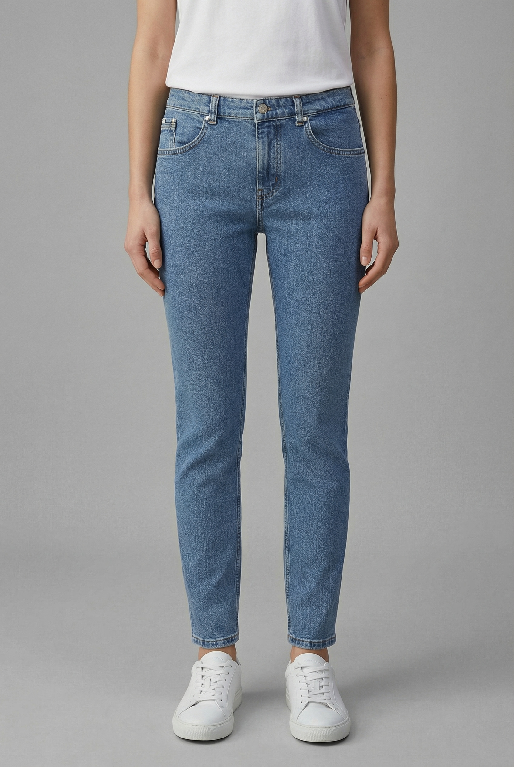 „Tapered“ bedeutet so viel wie „kegelförmig“ oder „spitz zulaufend“ und beschreibt die Passform der Tapered Jeans perfekt. Am Unterleib, Po und an den Oberschenkeln ist sie eher weit geschnitten und engt nicht ein. Erst im weiteren Verlauf verengt sie sich und umschließt die Fußgelenke fest. Sie ähnelt damit der guten alten Röhrenjeans, sitzt jedoch tiefer auf den Hüften. Es überrascht wenig zu hören, dass der Tapered Fit bei Jeans für Damen ursprünglich in der Modemetropole Mailand entstand. Hier entwickelte sich in den 80er-Jahren die jugendliche Subkultur der Paninari, das italienischen Gegenstück zu den Yuppies. Sie adaptierten amerikanische Kleidung und gaben ihr einen neuen modischen Twist.