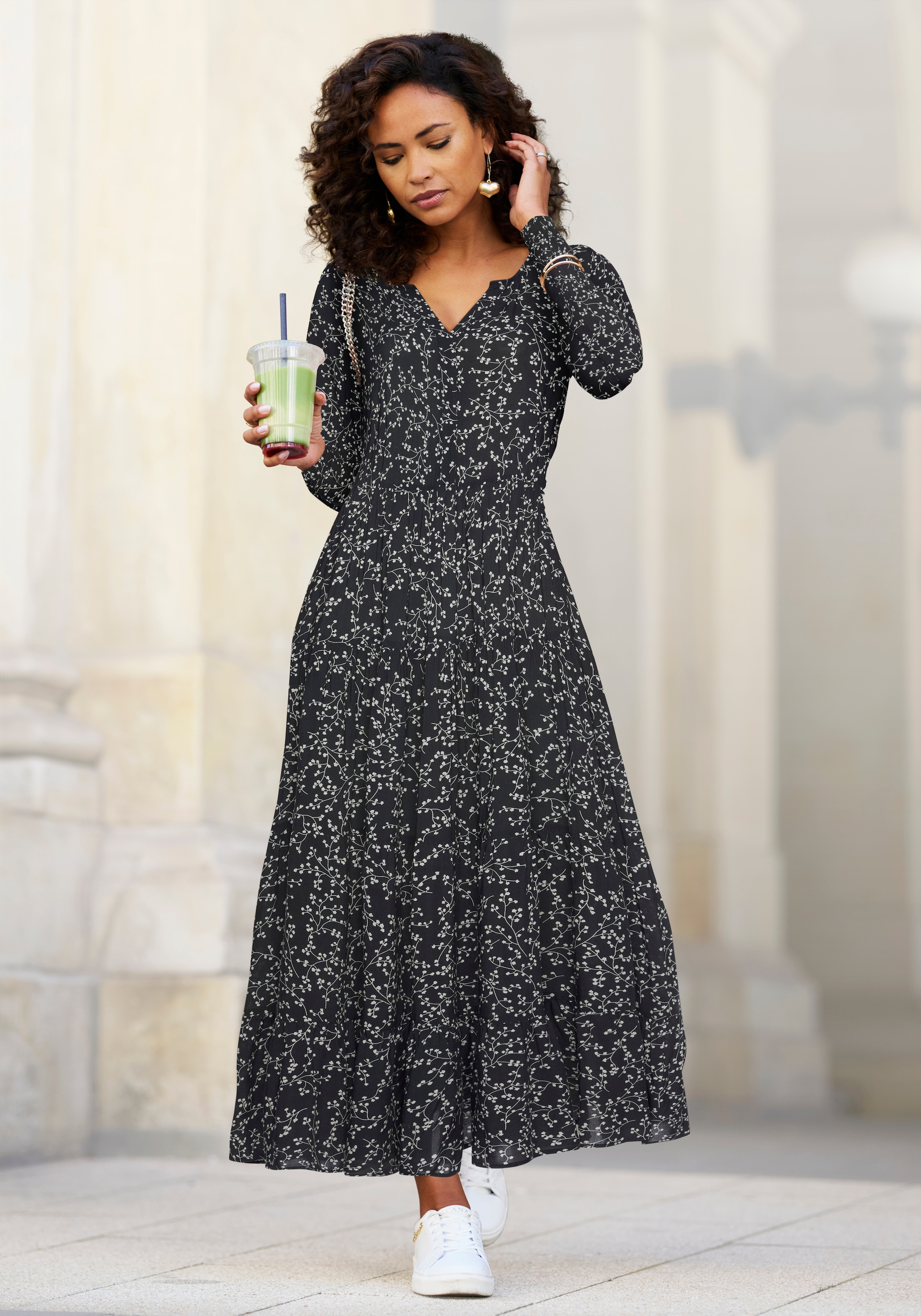 - Maxikleid mit Alloverprint und Volants, langärmlig, Druckkleid, casual-chicLASCANAAktueller Preisab 79,99 €