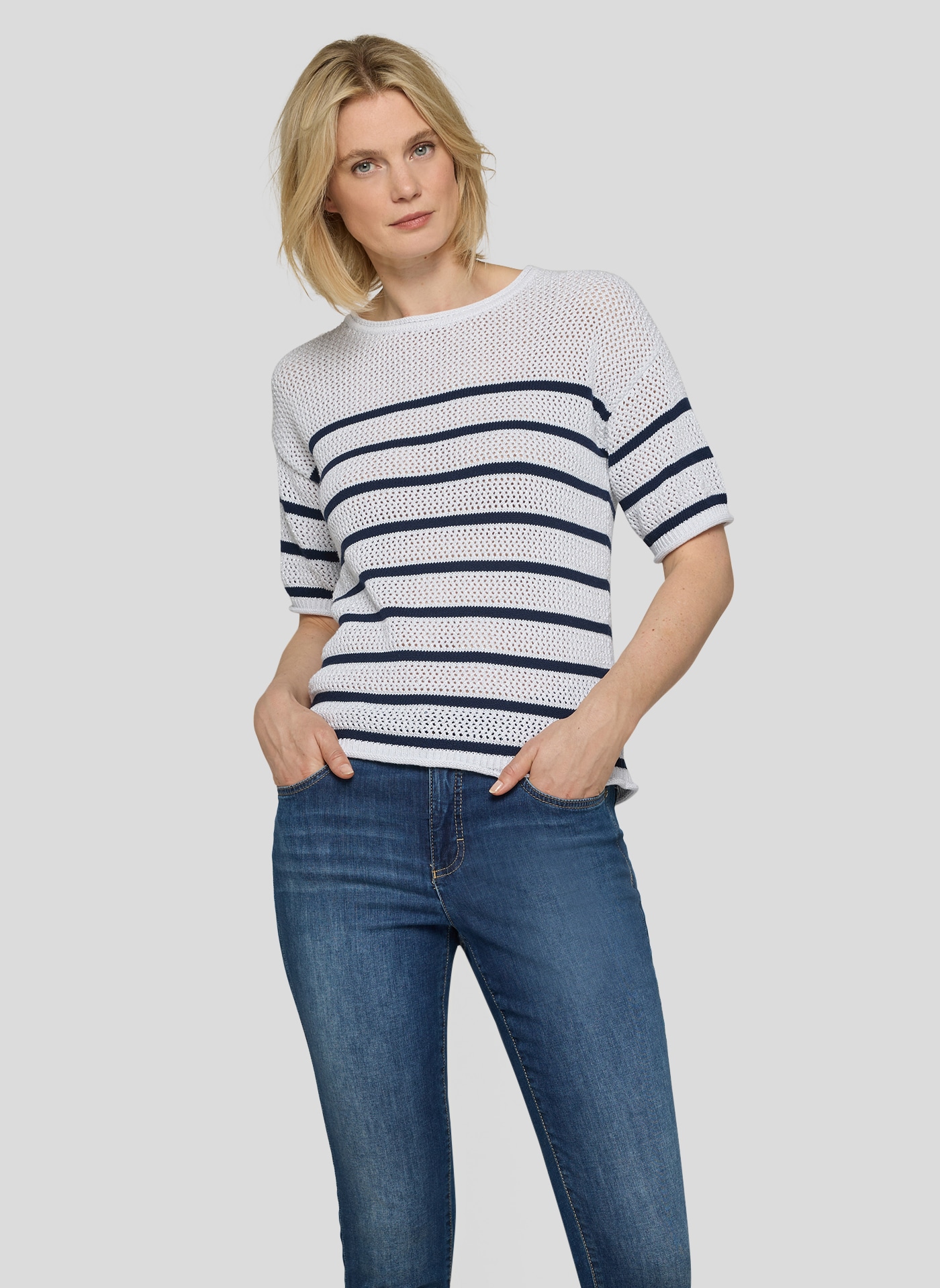 - Strickpullover Halbarm-Strickpullover mit Streifen und im Häkel-LookRabeAktueller Preis79,99 €
