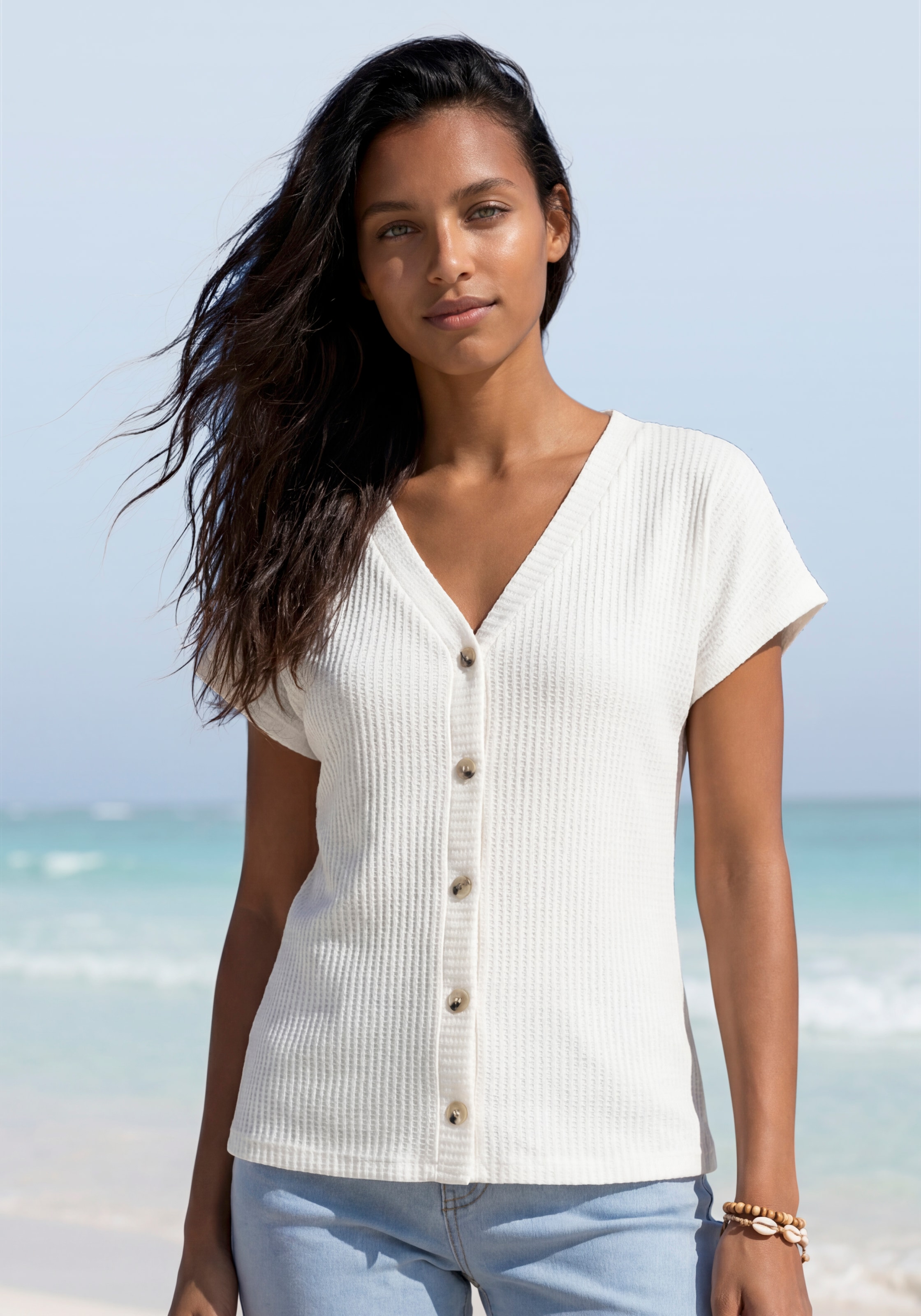+ Farben - T-Shirt »mit kurzer Knopfleiste« aus weicher Viskose-Ripp-QualitätLASCANAAktueller Preisab 29,99 €