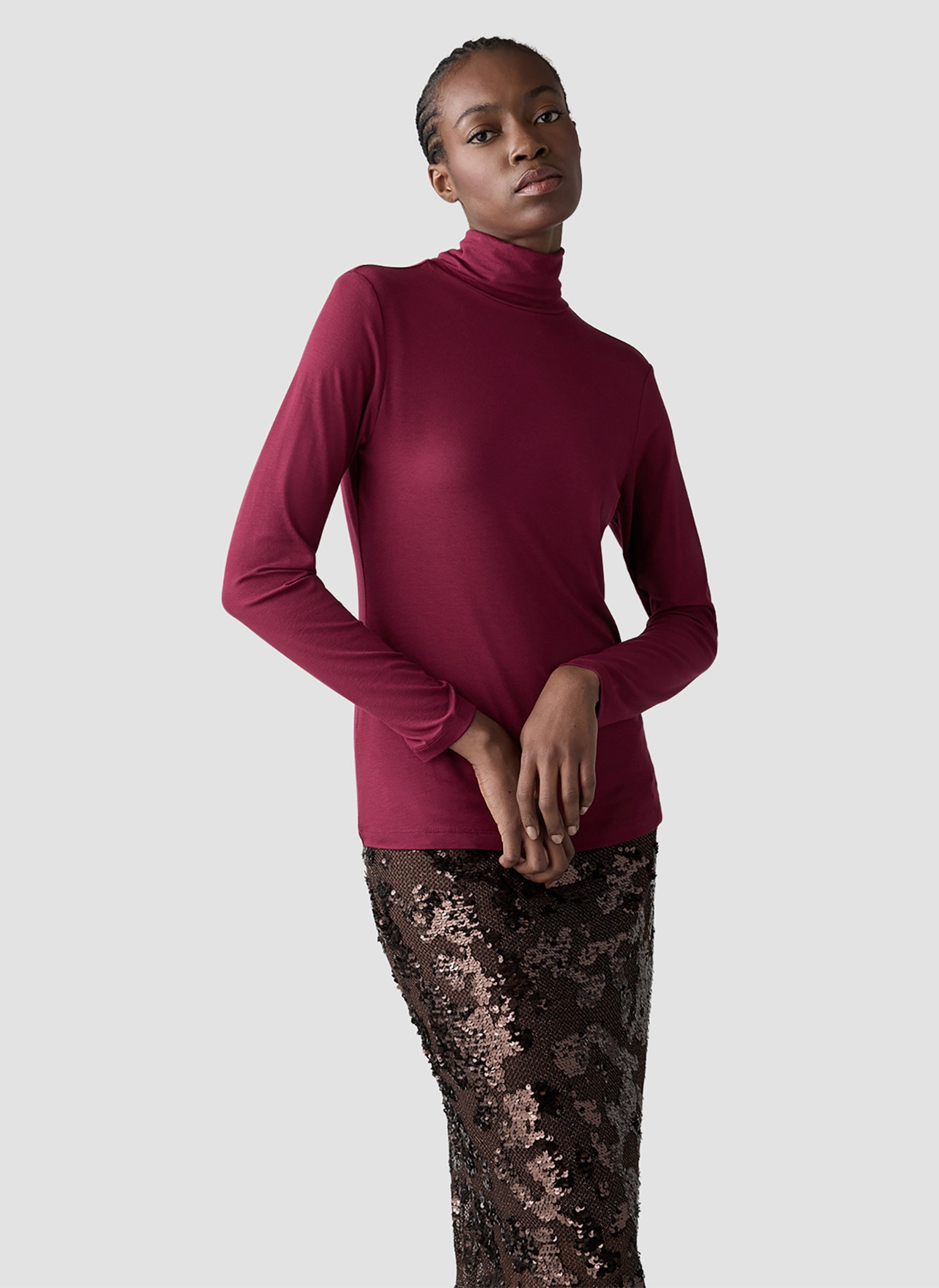 Gerade geschnitten, unifarben und mit rundem Ausschnitt präsentiert sich das Basis-Shirt, das sich für viele Outfits einsetzen lässt. Du kannst es als legeres Oberteil im Alltag zu Jeans tragen. In taillierter Form passt es hervorragend unter Blazer, Jacken und Pullover, da es durch die anliegende und verschlusslose Gestaltung nicht aufträgt. Einen Hauch eleganter wirken Ausführungen mit V-Ausschnitt. Diese Basisstücke erhältst du in einer umfangreichen Farbauswahl. So kannst du Varianten in neutralen Nuancen wie Weiß oder Schwarz ebenso wählen wie Modelle in intensiven Modefarben.