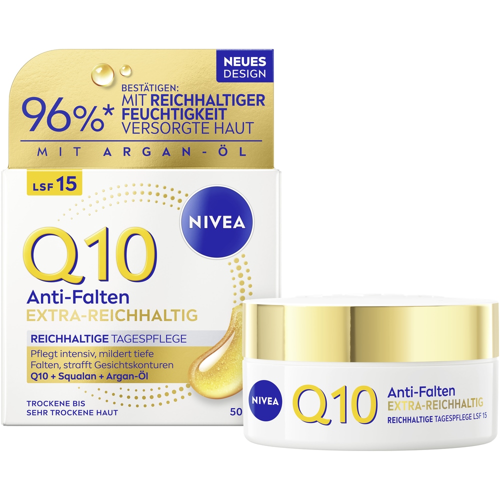 - Tagescreme »Q10 Anti-Falten Power Reichhaltige Tagespflege LSF 15« spendet intensive...NiveaAktueller Preis12,99 €Grundpreis259,80 €pro1 l