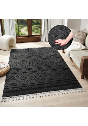 + Farben - Teppich »Bonvo« rechteckig 19 mm Höhe mit Fransen, Hoch-Tief-Struktur, Wohnzimmer,...my homeUrsprünglicher PreisUVP 461,00 €Rabatt- 289,36 €Aktueller Preis171,64 €