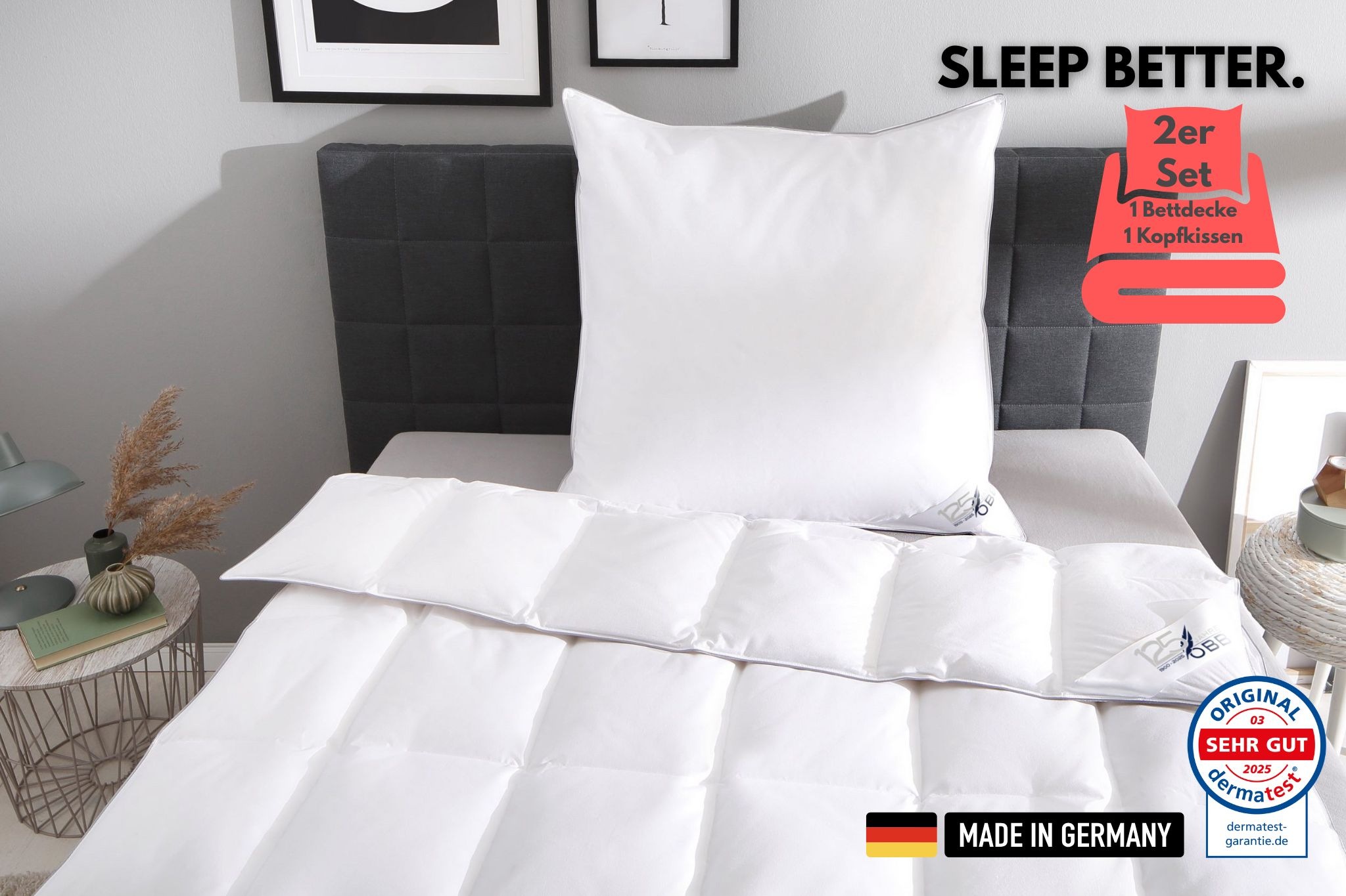 - Daunenbettdecke + Kopfkissen »Edition 125 Jahre, Bettendeckenset 2teilig, für Sommer...OBBUrsprünglicher PreisUVP 199,00 €Rabatt- 122,75 €Aktueller Preisab 76,25 €