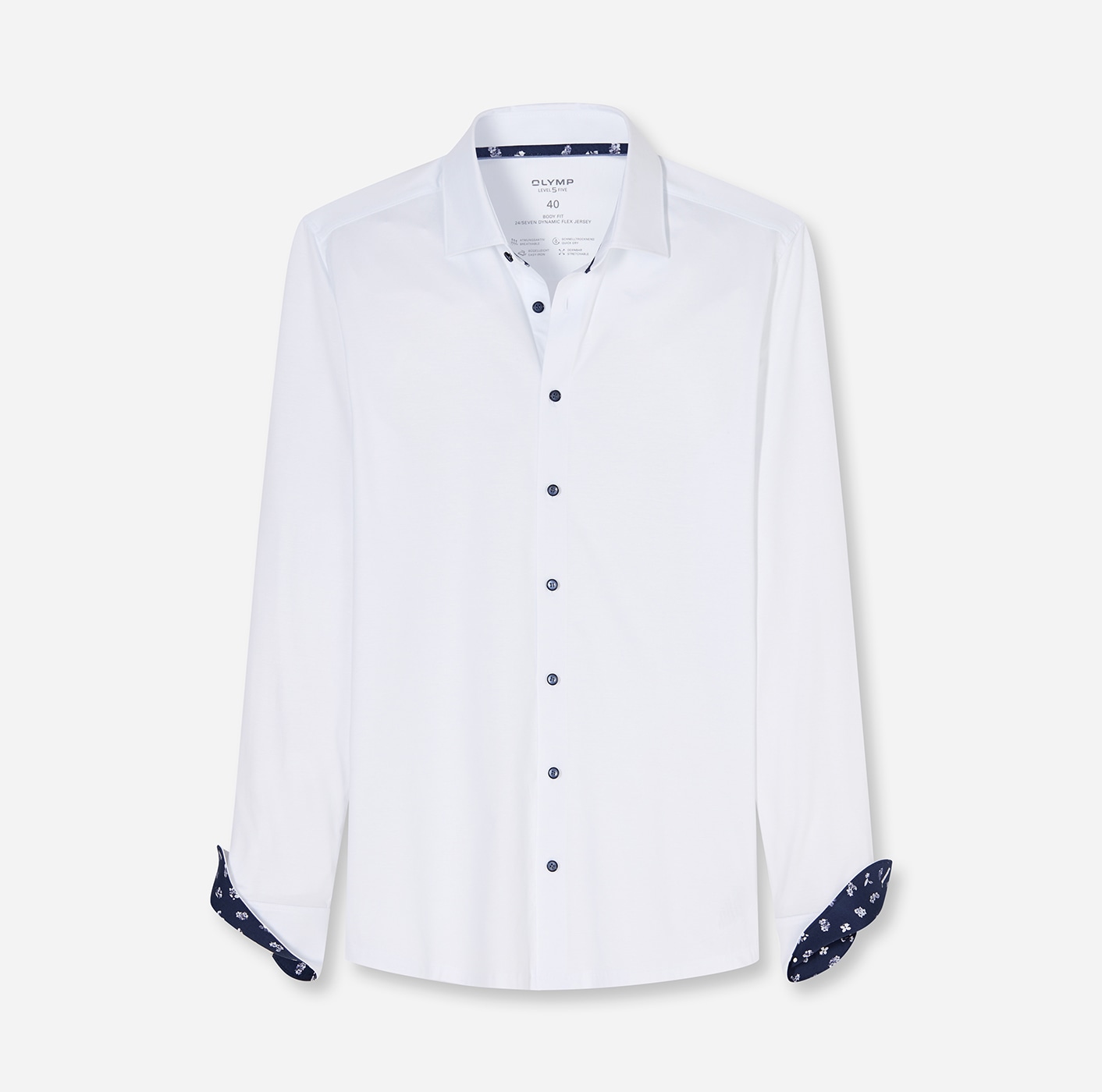 - Langarmhemd »24/7 - Level 5 - Jersey« modisches Blumenmuster in der InnenmanschetteOLYMPUrsprünglicher PreisUVP 89,95 €Rabatt- 39 %Aktueller Preisab 54,36 €