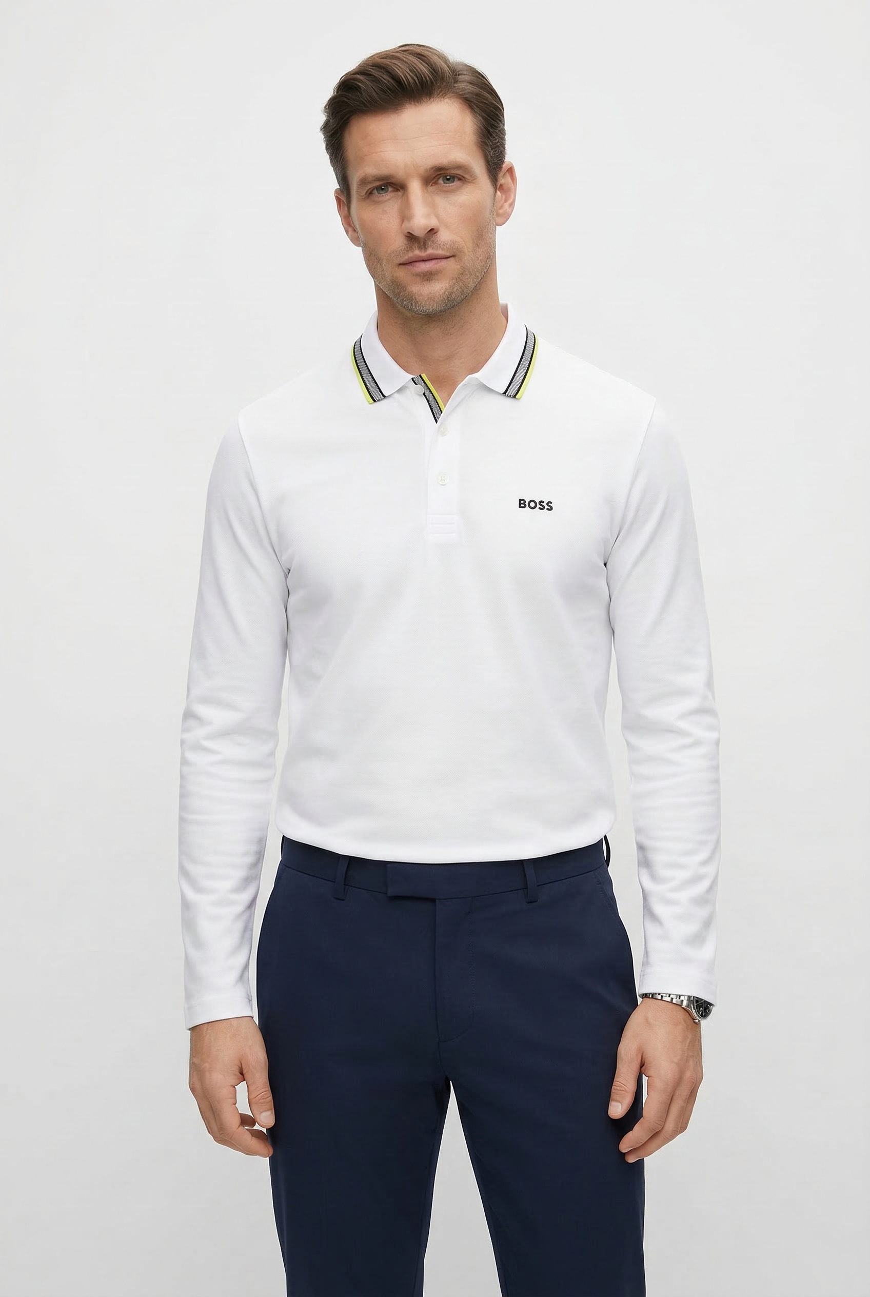 Auch wenn ein Poloshirt eher für den sportlichen Look in der Freizeit geeignet ist, gibt es viele Modelle, die prima in deine Businessgarderobe integriert werden können. Setze hierbei auf schlichte Varianten. Mit weißen Poloshirts gelingt dir der seriöse und gleichzeitig lässige Style ganz leicht. Mit langen Ärmeln und Baumwollmanschetten hast du so eine bequeme Alternative zum strengen Herrenhemd. Kombiniere ein sportliches Sakko und eine Stoffhose dazu – fertig ist dein Smart-Casual-Look.