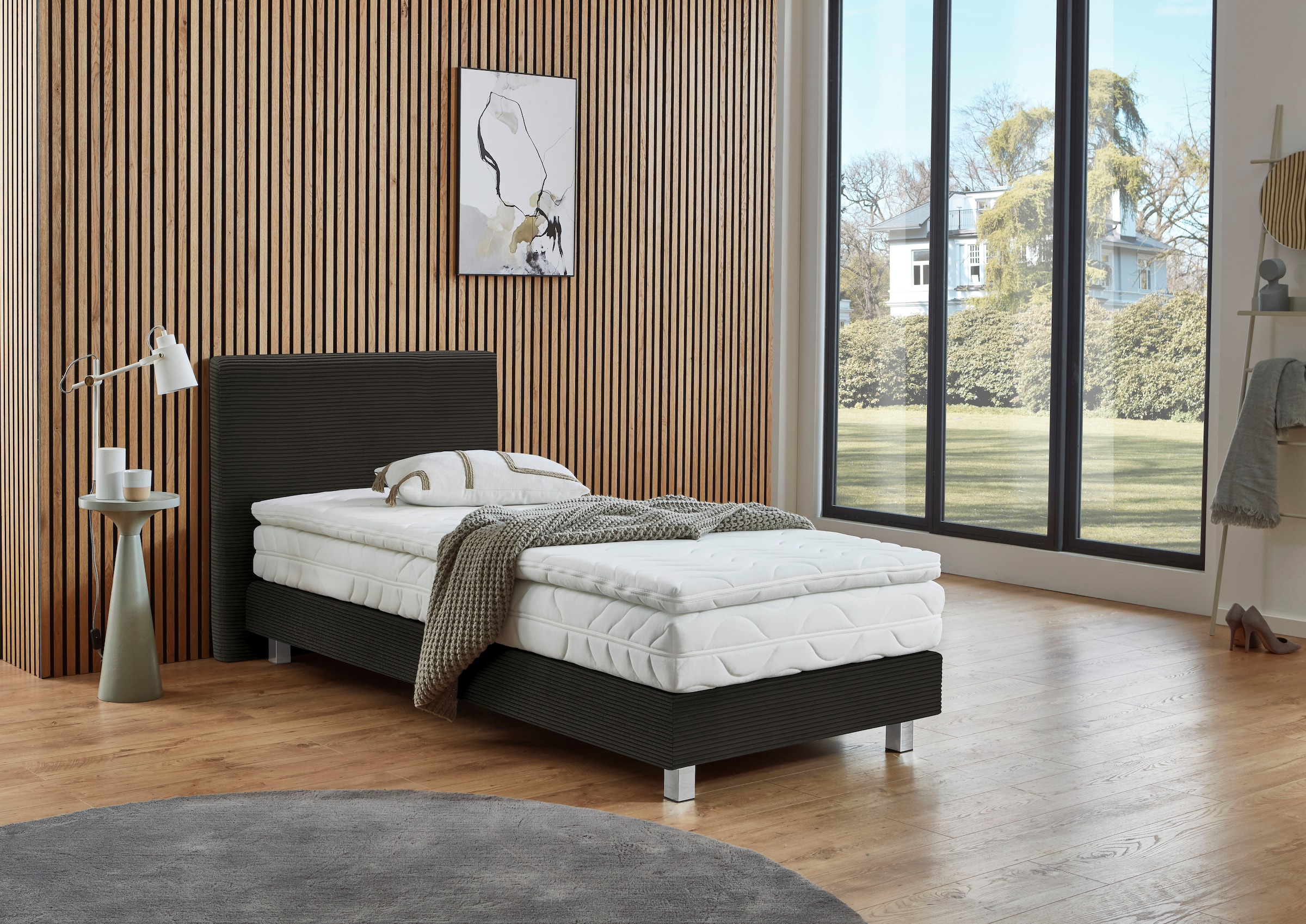 - Die Unterbox: Das Fundament bildet ein stabiler Rahmen mit einem Federkernsystem, meist aus Bonell- oder Taschenfedern. Diese Box trägt die Matratze und sorgt für die grundlegende Federung sowie eine ideale Druckverteilung.
