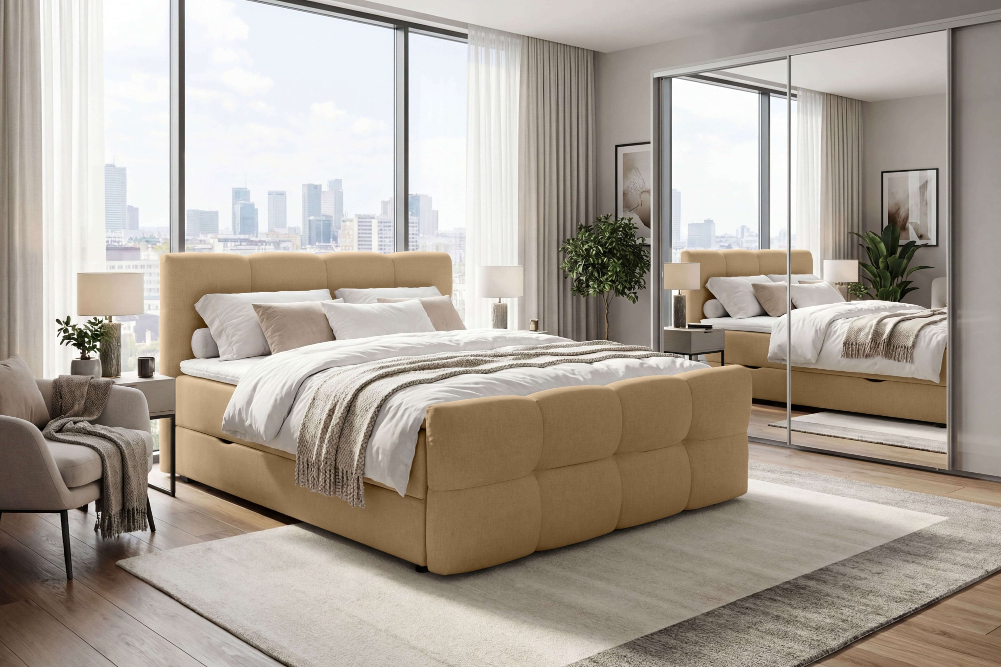 - Die Unterbox: Das Fundament bildet ein stabiler Rahmen mit einem Federkernsystem, meist aus Bonell- oder Taschenfedern. Diese Box trägt die Matratze und sorgt für die grundlegende Federung sowie eine ideale Druckverteilung.