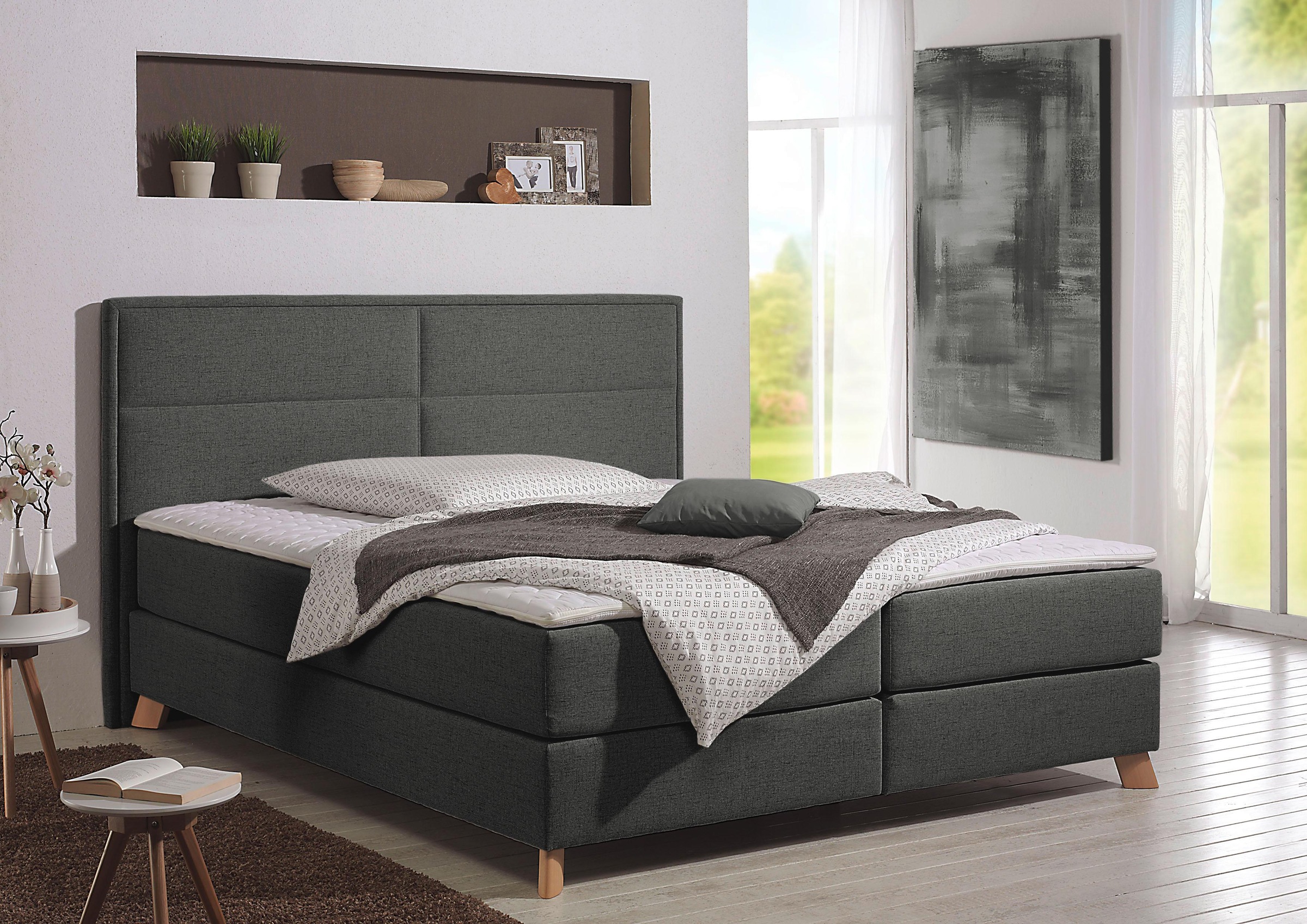 - Boxspringbett »Manchester« 5 Breiten, 3 Ausführungen, 2 Härtegraden, Topper, SteppungHome affaireUrsprünglicher PreisUVP 1.682,00 €Rabatt- 462,01 €Aktueller Preisab 1.219,99 €+ Farben