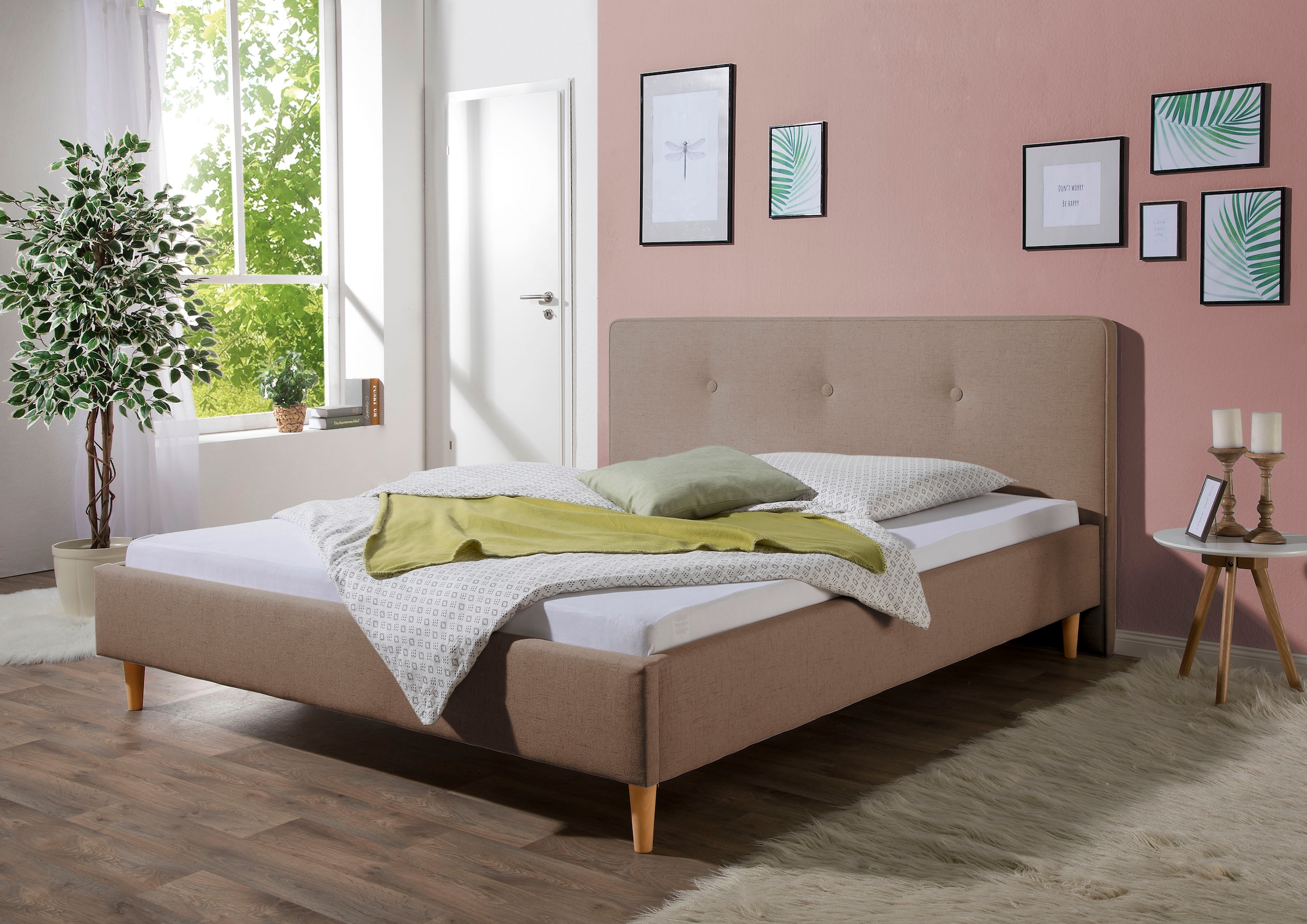 + Farben - Polsterbett »Riva« mit eichefarbigen Holzfüßen, wahlweise mit Bettkasten und Lattenrostmeise.möbelUrsprünglicher PreisUVP 1.302,00 €Rabatt- 557,01 €Aktueller Preisab 744,99 €