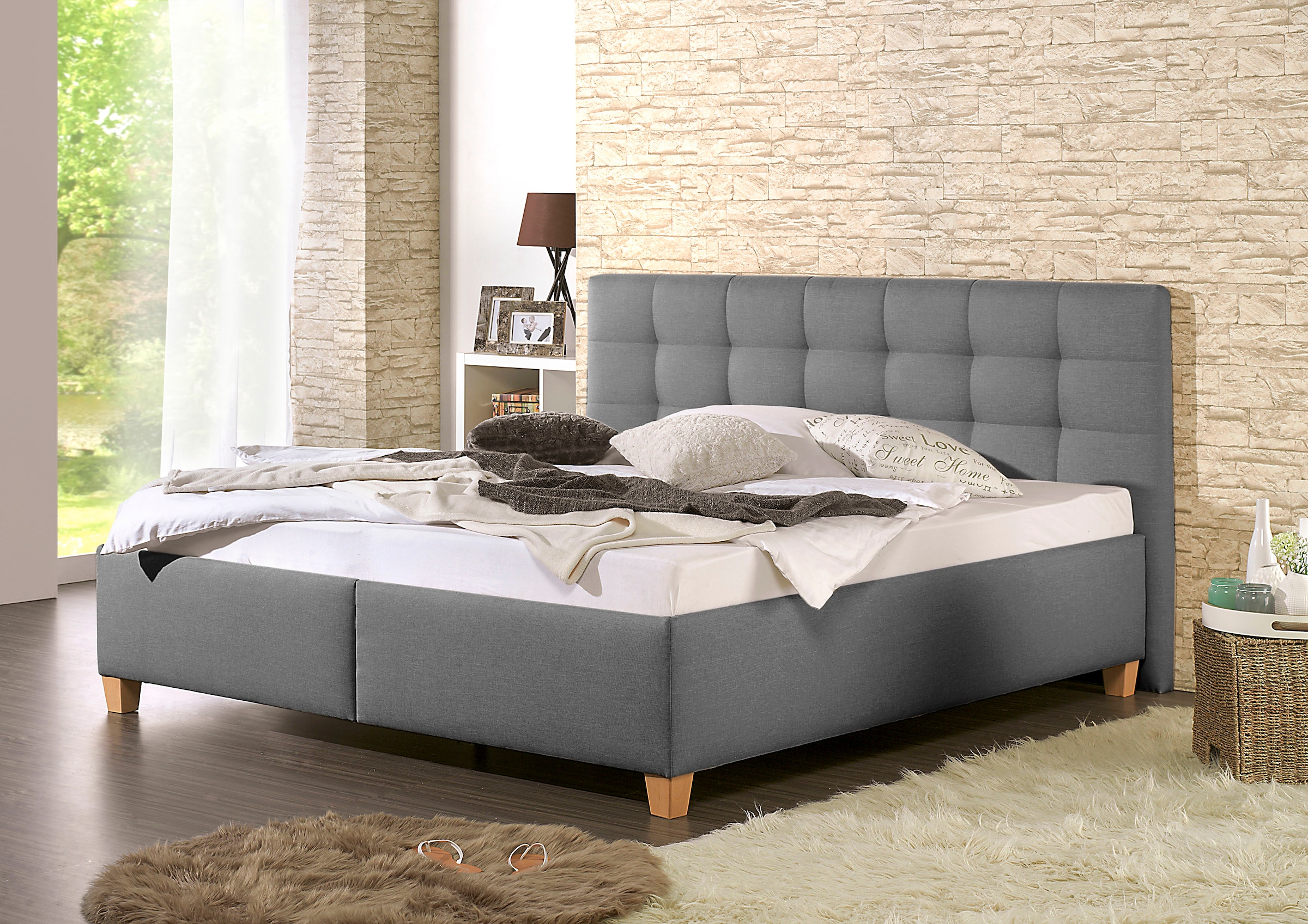 - Polsterbett »Riva« mit eichefarbigen Holzfüßen, wahlweise mit Bettkasten und Lattenrostmeise.möbelUrsprünglicher PreisUVP 1.317,00 €Rabatt- 617,01 €Aktueller Preisab 699,99 €