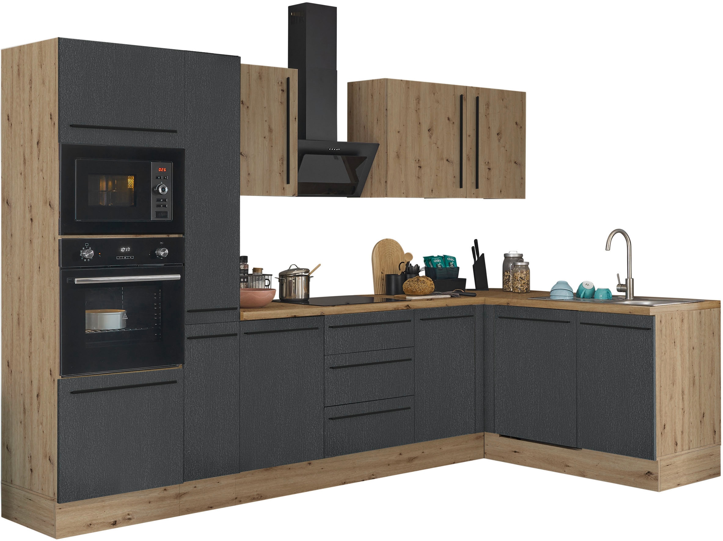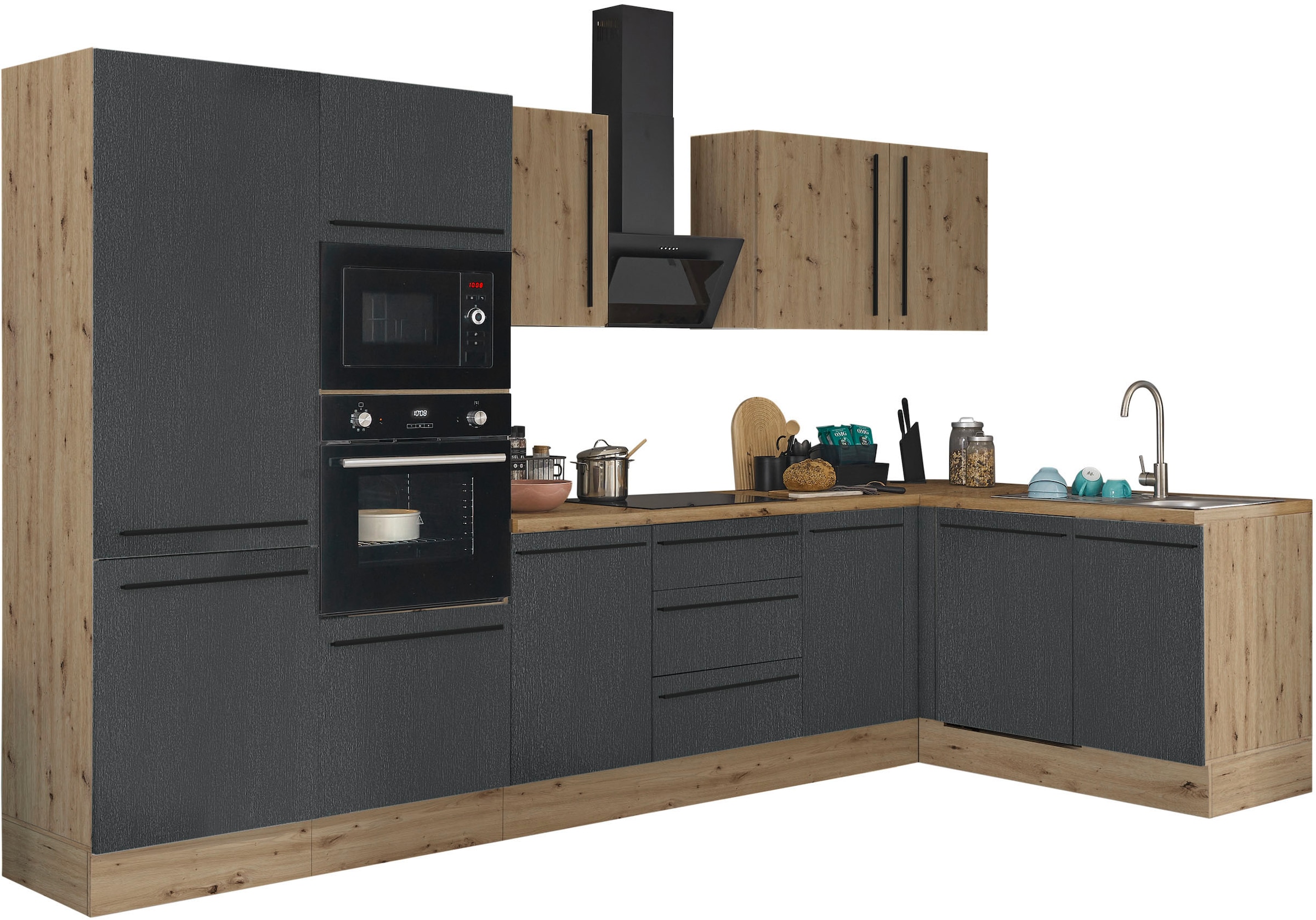 - Winkelküche »Florida, Stellbreite 310x175 cm« wahlweise mit E-Geräten, mit Softclose...KOCHSTATIONUrsprünglicher PreisUVP 3.839,00 €Rabatt- 1.159,01 €Aktueller Preis2.679,99 €GeschirrspülerProduktdatenblattKühl-GefrierkombinationProduktdatenblattDunstabzugshaubeProduktdatenblattHerd-SetProduktdatenblatt