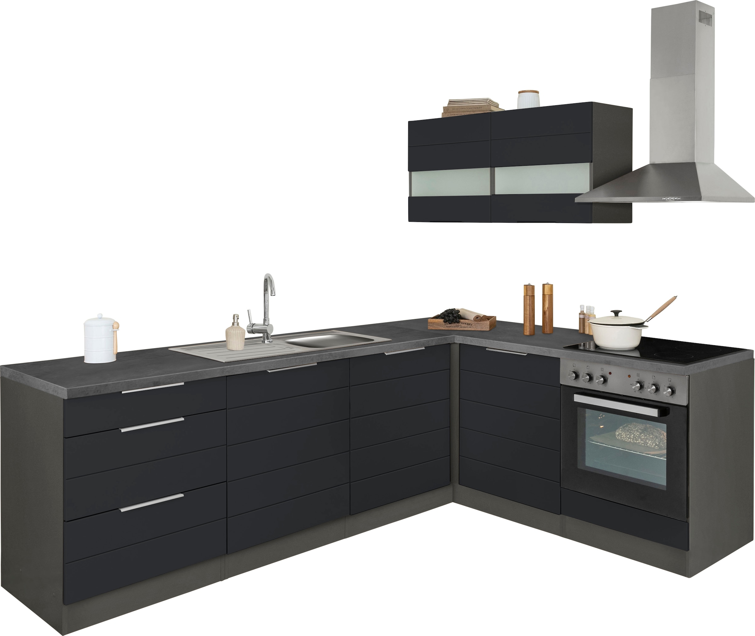 - Winkelküche »KS-Trient« Stellbreite 230x190 cm, wahlweise mit E-Geräten, mit...KOCHSTATIONUrsprünglicher PreisUVP 2.089,00 €Rabatt- 504,01 €Aktueller Preisab 1.584,99 €
