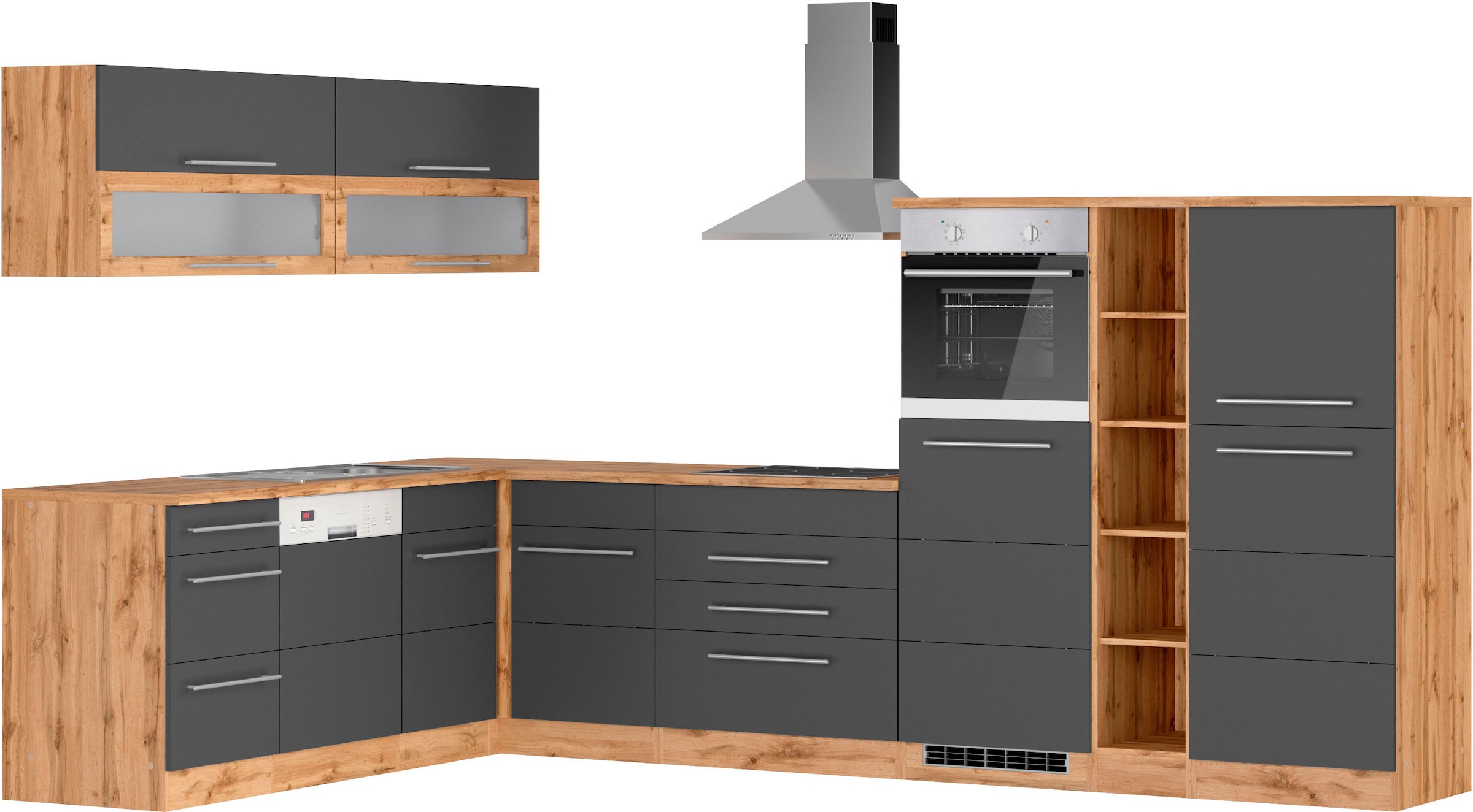 - Winkelküche »KS-Luhe« Stellbreite 240x330 cm, wahlweise mit oder ohne E-Geräten,...KOCHSTATIONUrsprünglicher PreisUVP 7.769,00 €Rabatt- 2.429,01 €Aktueller Preis5.339,99 €BackofenProduktdatenblattGeschirrspülerProduktdatenblattKühl-GefrierkombinationProduktdatenblattDunstabzugshaubeProduktdatenblatt