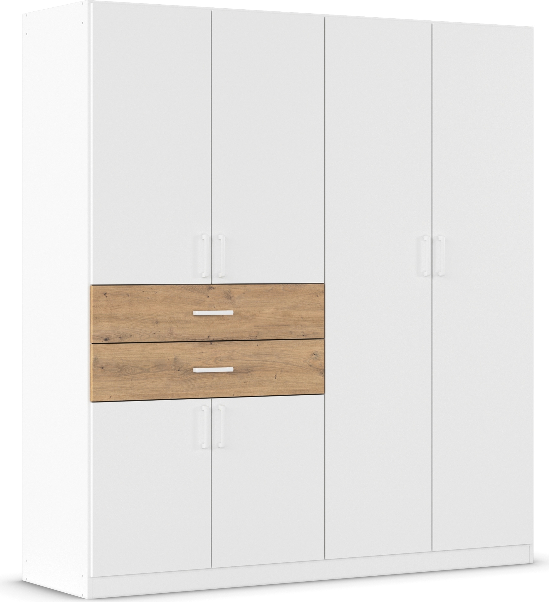Drehtürenschränke sind die Klassiker unter den Kleiderschränken und wahre Multitalente. Sie besitzen mindestens zwei, oft sogar mehr Türen. Im Gegensatz zu Modellen mit Schiebe- oder Schwebetüren lassen sich beim Drehtürenschrank darüber hinaus sehr gut Schubladen für Unterwäsche, Socken & Co integrieren. Die Gestaltung des Innenraums variiert von Schrank zu Schrank, dasselbe gilt für die eingesetzten Materialien und Farben.