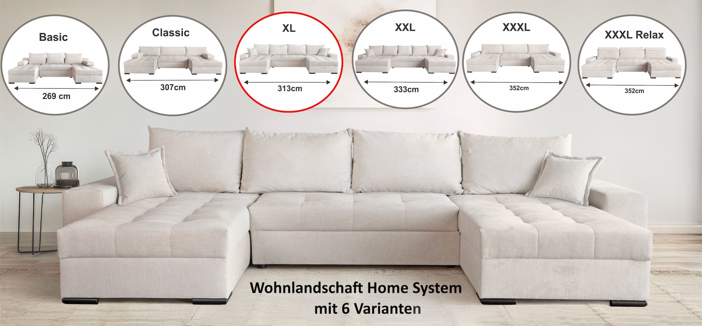 + Farben - Wohnlandschaft »Home System U-Form, von B: 269-352 cm wählbar, 6 Varianten zur...OTTO homeUrsprünglicher PreisUVP 1.180,00 €Rabatt- 280,01 €Aktueller Preis899,99 €