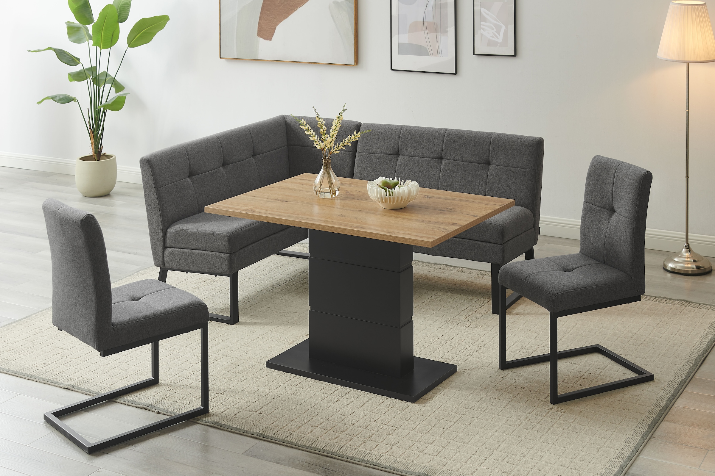 - Eckbankgruppe »Geranie, Sitzgruppe, Eckbank inkl. Stauraum, Esstisch, 2 Freischwinger«...OTTO homeUrsprünglicher PreisUVP 1.819,99 €Rabatt- 1.120,00 €Aktueller Preis699,99 €