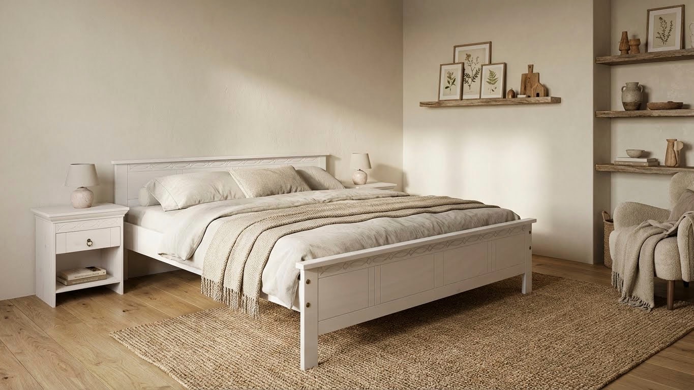 - Massivholzbett »"CAPRE" im skandinavischem Landhausstil« mit Rollrost, aus...OTTO homeUrsprünglicher PreisUVP 302,99 €Rabatt- 14 %Aktueller Preisab 259,99 €