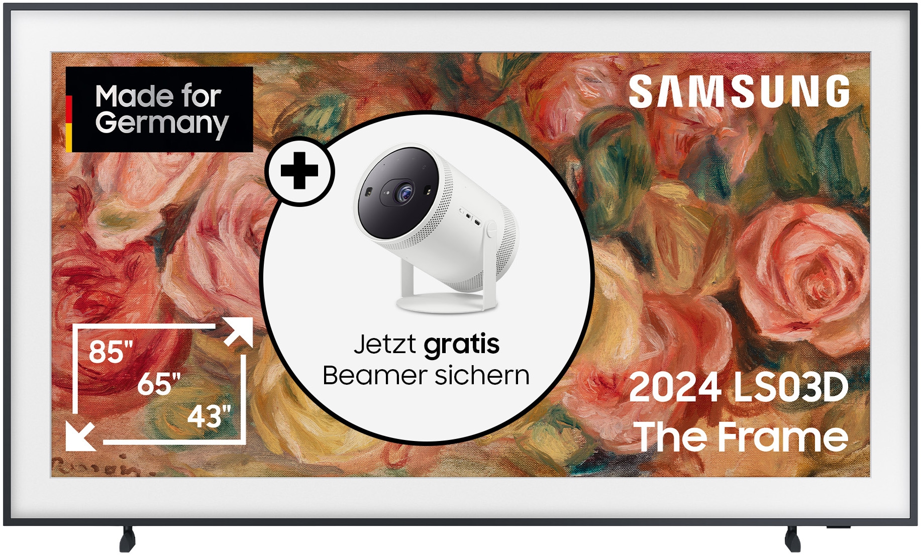 - Stiftung Warentest „Gut“ (2,2) im Einzeltest – getestet The Frame QLED LS03F mit 65 Zoll Bildschirmdiagonale, Ausgabe 29.08.2025. Das „gute“ Bild überzeugt mit hoher Bildqualität