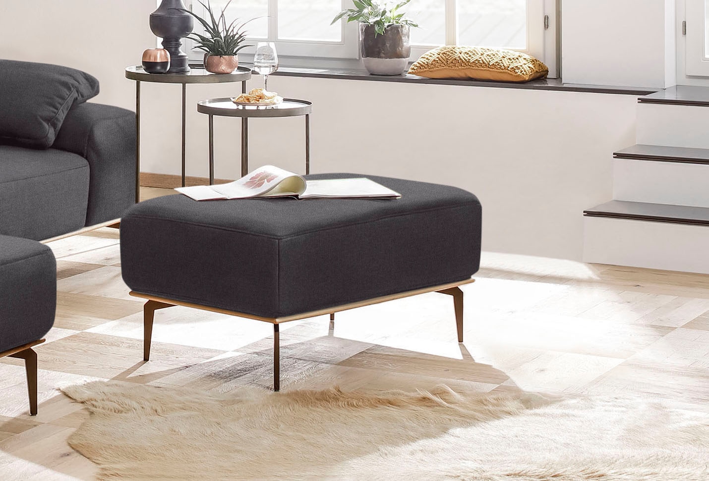 W.SCHILLIG Polsterhocker »run« mit Holzsockel, Füße in Bronze pulverbeschichtet, Breite 75 cm
