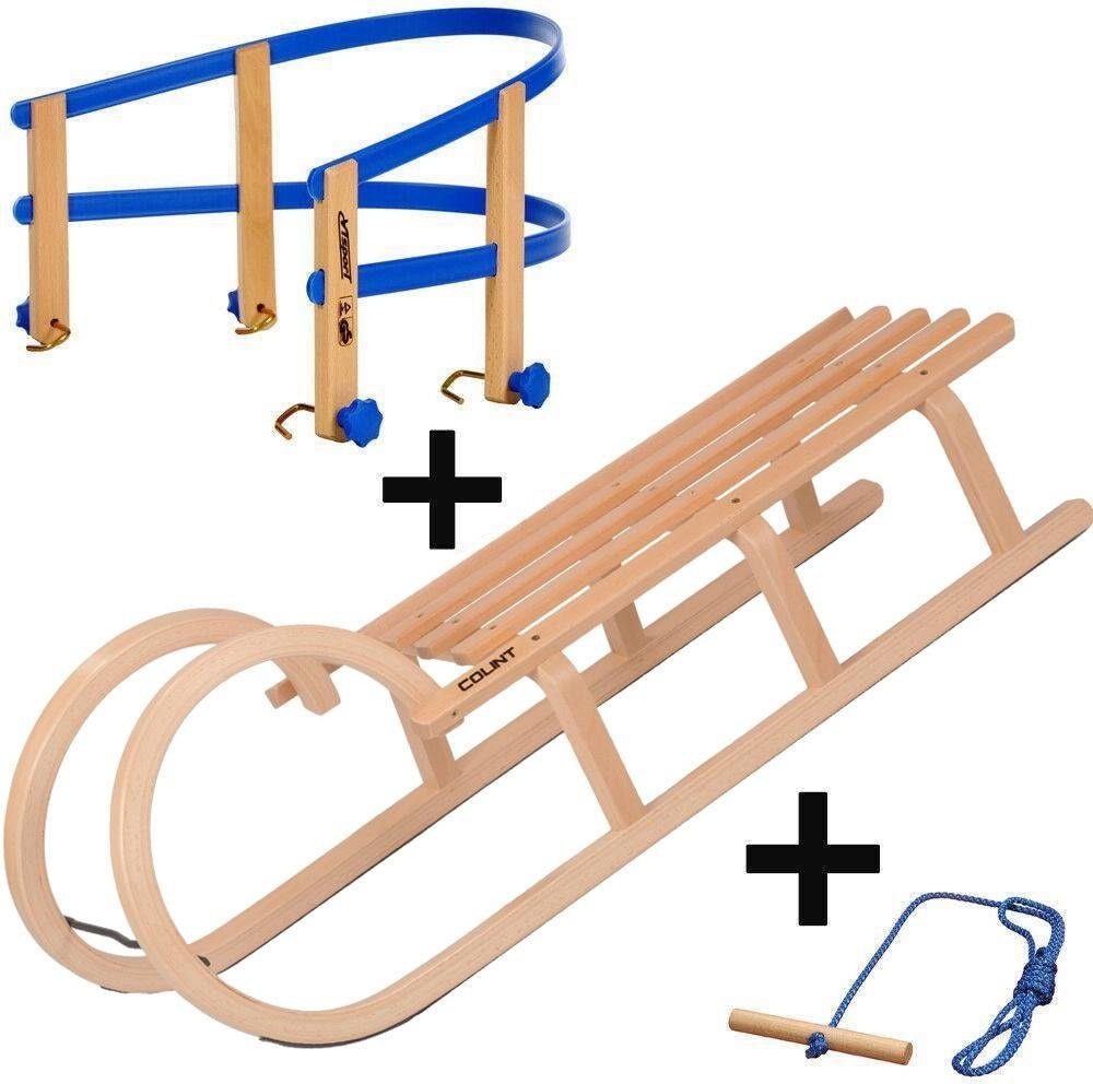 Schlittenset Hörner 110 cm mit Holz/Kunststofflehne und Leine