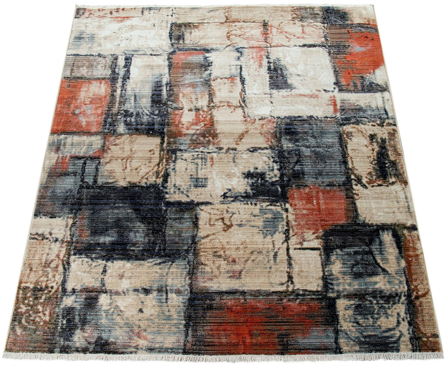 Bildquelle: Paco Home Teppich »Sena 452« rechteckig 11 mm Höhe Kurzflor, modernes abstraktes Design, mit Fransen