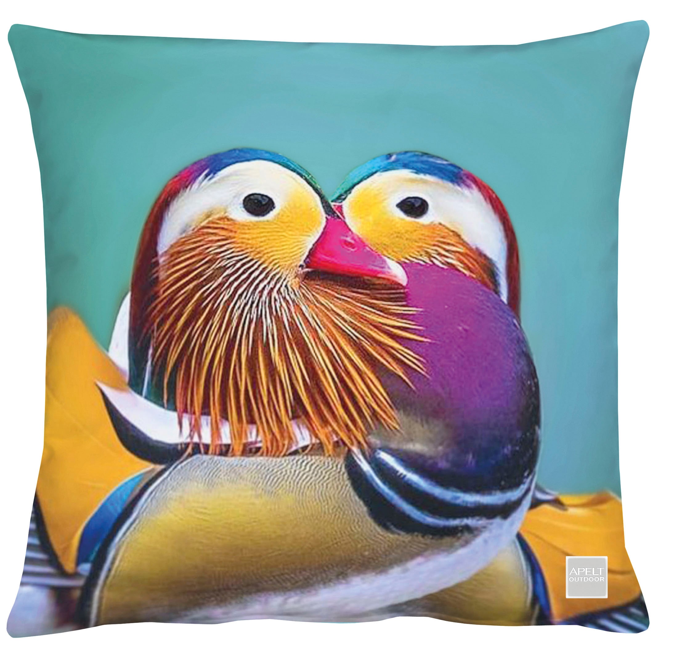 NEU! Outdoor-Kissen aus extra UV geschützem 100% Polyester-Material - wunderschönes romantisches Mandarinentenpaar   - umweltfreundlicher Digitaldruck als Kissen mit praktischem Reißverschluss.  Optimal für den Außenbereich technisch ausgestattet: fleckgeschützt, aus strapazierfähigen Garnen, hohe Lichtechtheit und besten Materialeigenschaften wie Atmungsaktivität und einem angenehmen textilen Griff.  Schadstoffgeprüft nach STANDARD 100 by OEKO-TEX® und made in Germany. Waschbar mit 30°C im Schonwaschgang, feucht aufhängen, auf 2 Punkt  bügeln.