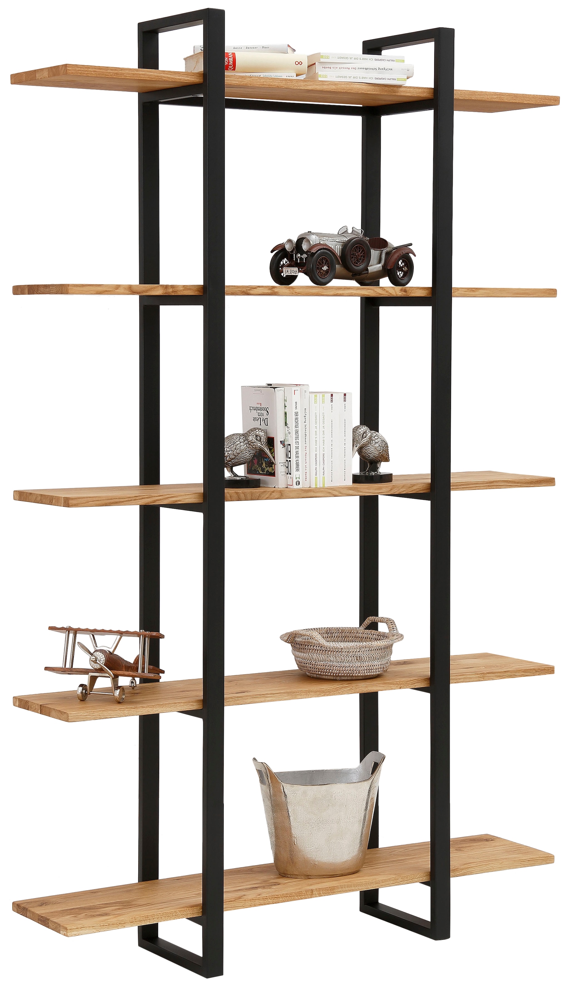 Home affaire Regal »Krystian« Maße (B/T/H) cm: 120/29/189, Raumteiler, Ablagen aus Eichenholz, Gestell aus robustem Metall