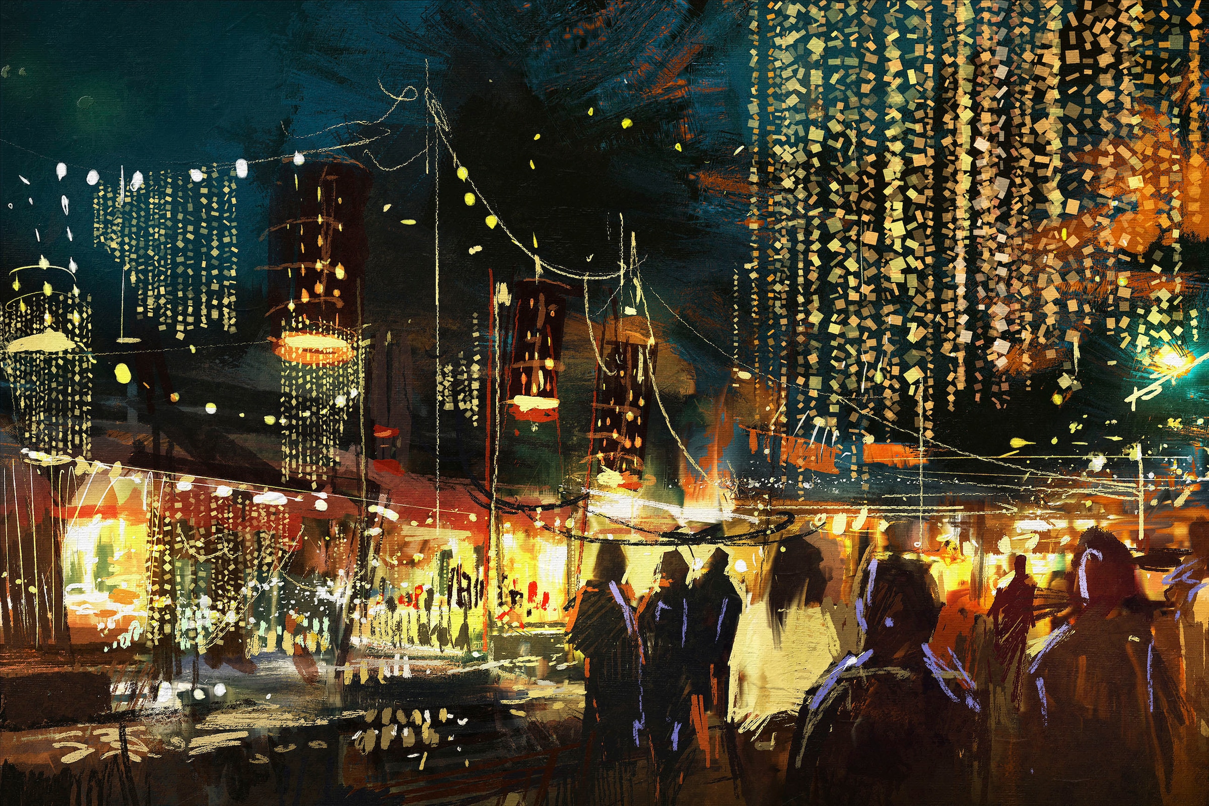 Bildquelle: queence Leinwandbild »Markt« Gebäude | Menschen | Städte Premium-Leinwandstoff, Handarbeit aus Deutschland