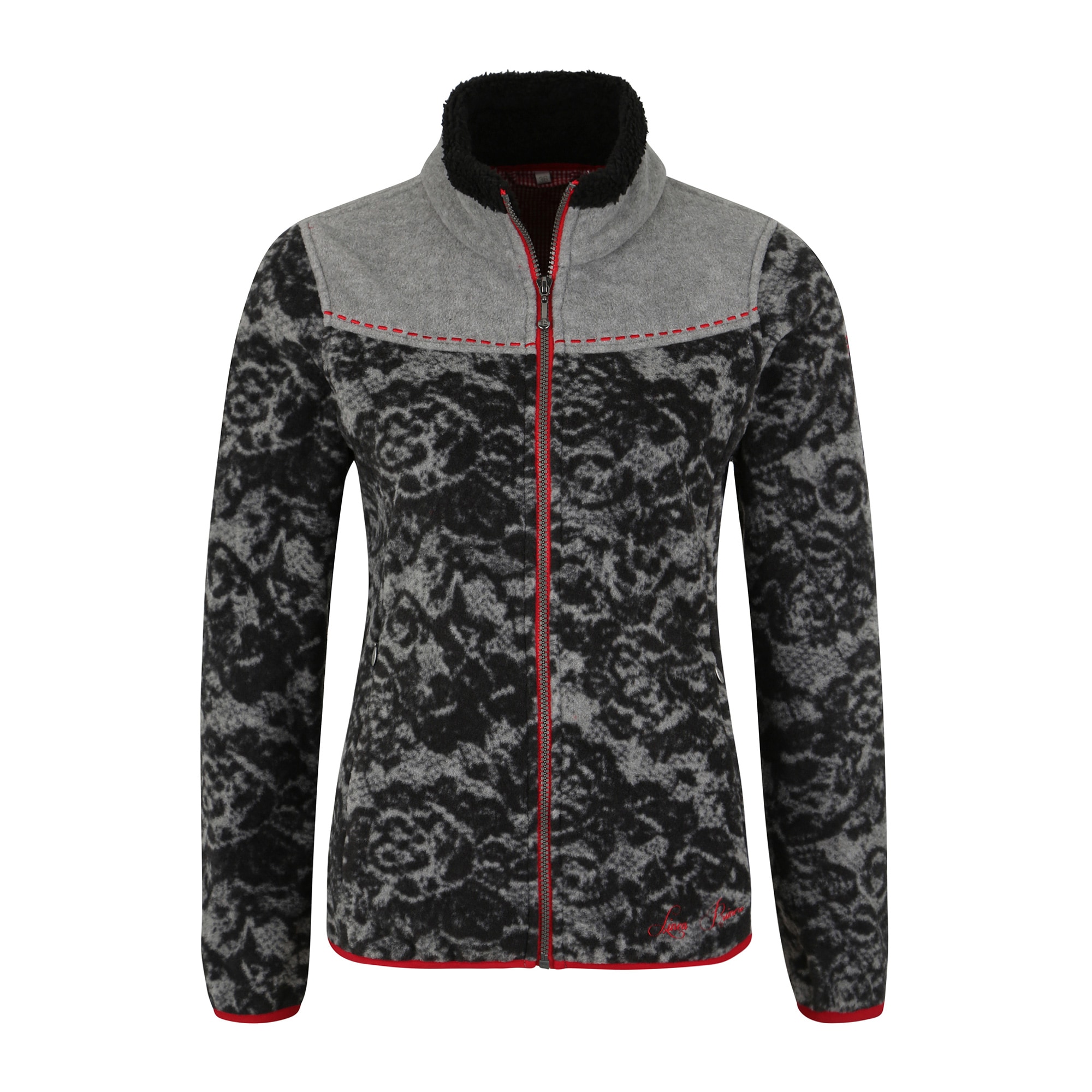Endlich eine Fleecejacke, die alles andere als langweilig ist! Außergewöhnliche Optik und höchste Funktionalität stehen beim Linea Primero WEDGWOOD WOMEN FLEECE by DEPROC active im perfekten Einklang. Die Fleecejacke mit femininer Schnittführung ist ein klassischer Wärmespender aus hoch funktionalem LPO High Soft Fleece. Dieses ist besonders leicht und sorgt für ein ausgewogenes Verhältnis zwischen Wärmeisolation und Atmungsaktivität. Die Körperwärme wird dabei effektiv gespeichert, Wasserdampf kann hingegen einfach entweichen. Das Material bietet selbst im feuchten Zustand noch ausreichend Wärmeisolation. Ellbogenpatches und Schulterpasse sind uni gehalten und mit dem All-Over-Design der Jacke perfekt abgestimmt. Reißverschluss, Elastikeinfassungen an Saum und Armabschlüssen, Stickereien und Labeldetails sind in kontraststarkem Rot kombiniert. Der Stehkragen ist innen mit einem Teddyfleece gefüttert und damit ganz besonders angenehm und kuschelig. Zwei Einschubtaschen bieten genügend Platz für Schlüssel und Smartphone.