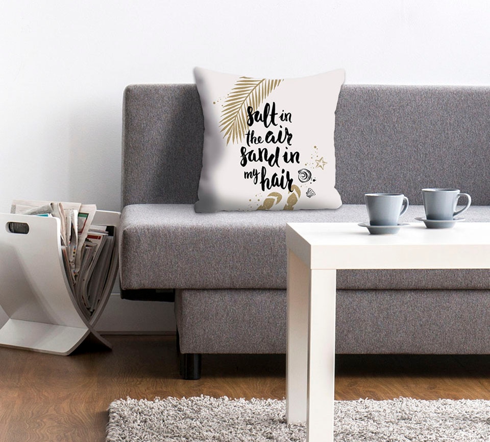 queence Dekokissen »Salt & Sand« Kissenhülle,Salt in the air,sand in my hair,Spruch,Sommer,Strand