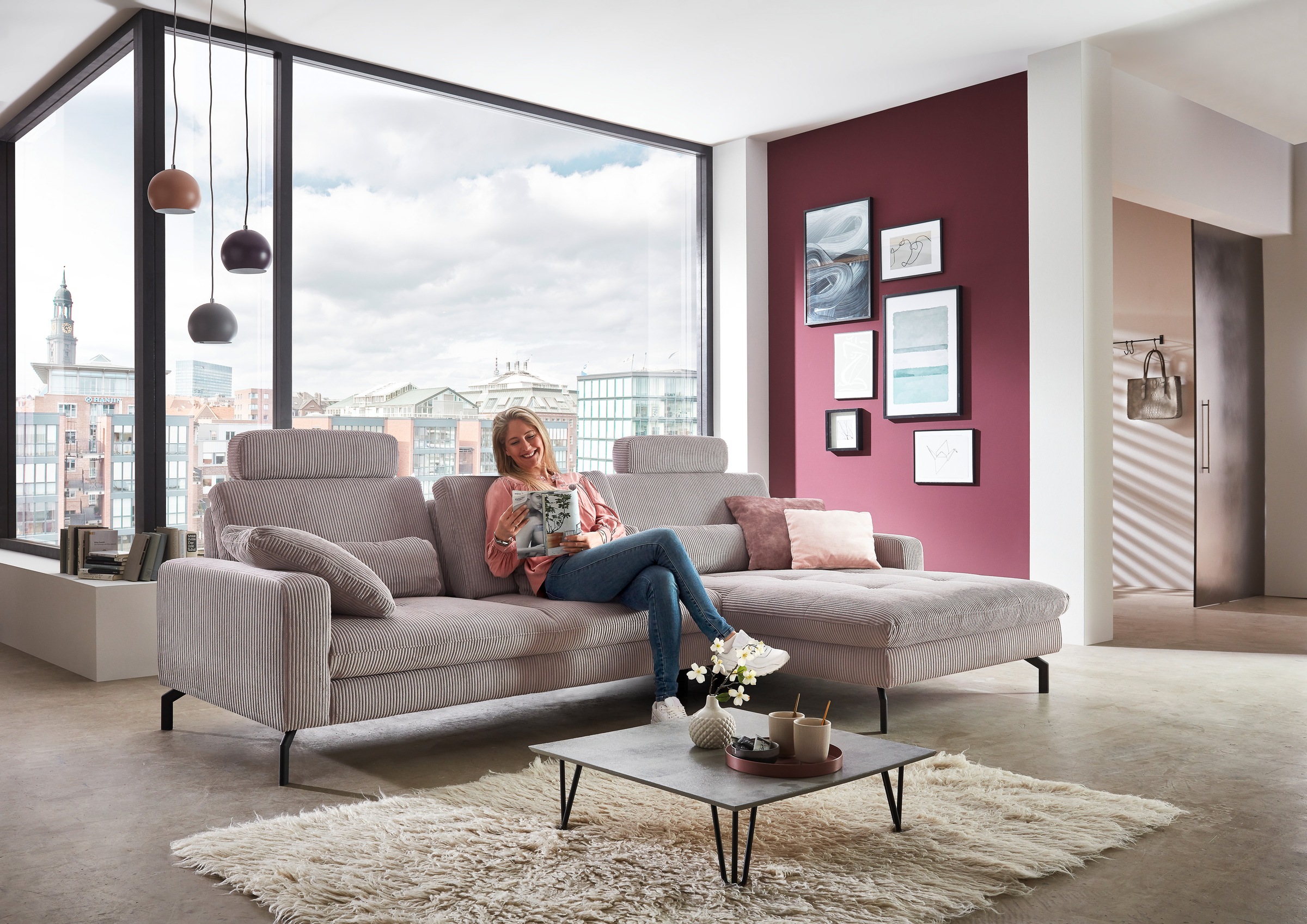 sit&more Ecksofa »Brisbane L-Form« Fußhöhe 15 cm, inklusive Sitztiefen-, Armteil- und Kopfteilverstellung