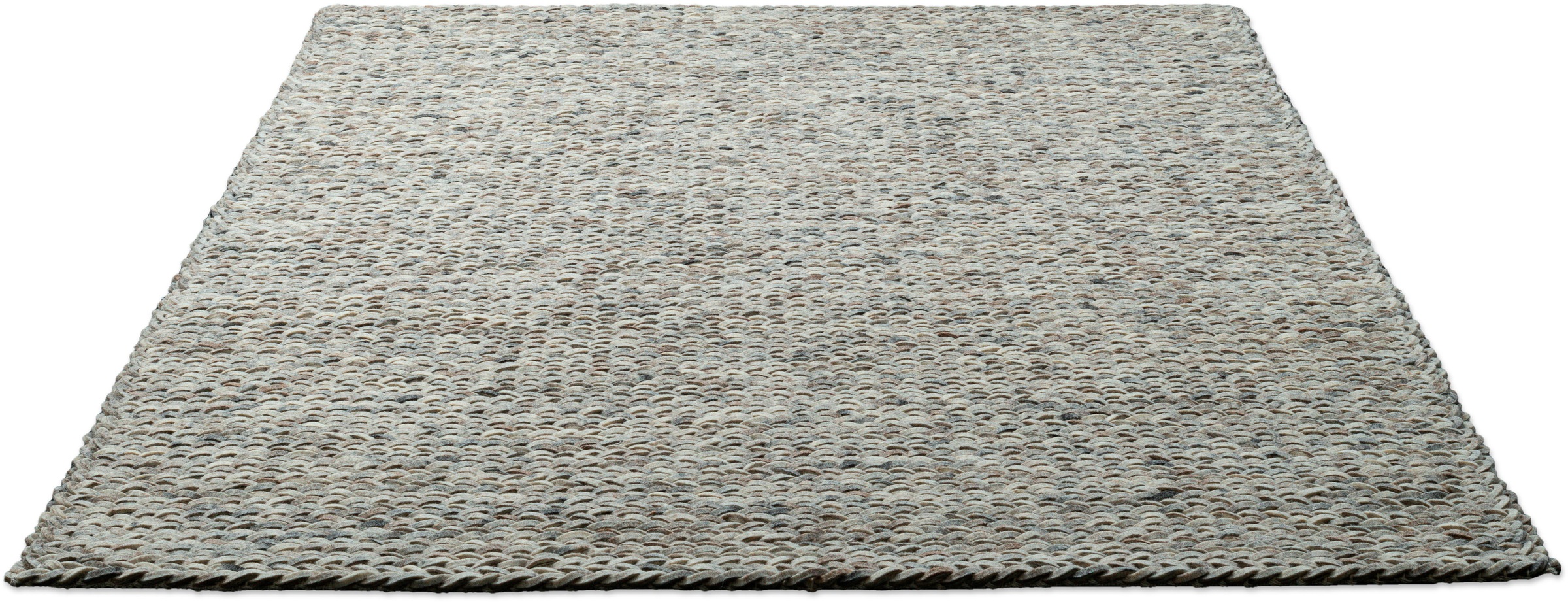 Filz Teppich aus feinster Merino Wolle. Die Wolle wird maschinell verfilzt und hat dadurch einen enormen halt und ist absolut robust. Ein Teppich aus dem nachwachsenden Rohstoff Schurwolle ist nicht nur isolierend und wärmend für den Winter, er sorgt auch für ein angenehmes Raumklima. Wolle ist das perfekte Material für einen Teppich. Sie ist robust, widerstandsfähig, reguliert natürlich das Raumklima positiv und zieht durch ihre antistatischen Eigenschaften den Schmutz aus der Luft. Darüber hinaus hat die Schurwolle eine natürliche Selbstreinigungsfunktion. Der natürliche, nachwachsender Rohstoff Schurwolle ist in seiner Natur umweltfreundlich und verbraucht keine zusätzlichen Ressourcen. Schafswolle ist sehr farbecht und schwer entflammbar. Wollteppiche haben die Eigenschafft zu Beginn überflüssige Wollfasern aus der Produktion zu verlieren (Fusseln). Dies ist ein natürlicher Prozess, der bei regelmäßigen Saugen und Begehen des Teppichs schnell vergeht. Der Teppichflor erhält hierdurch mehr Stabilität und der Glanz der Wolle kommt besser zum Vorschein.