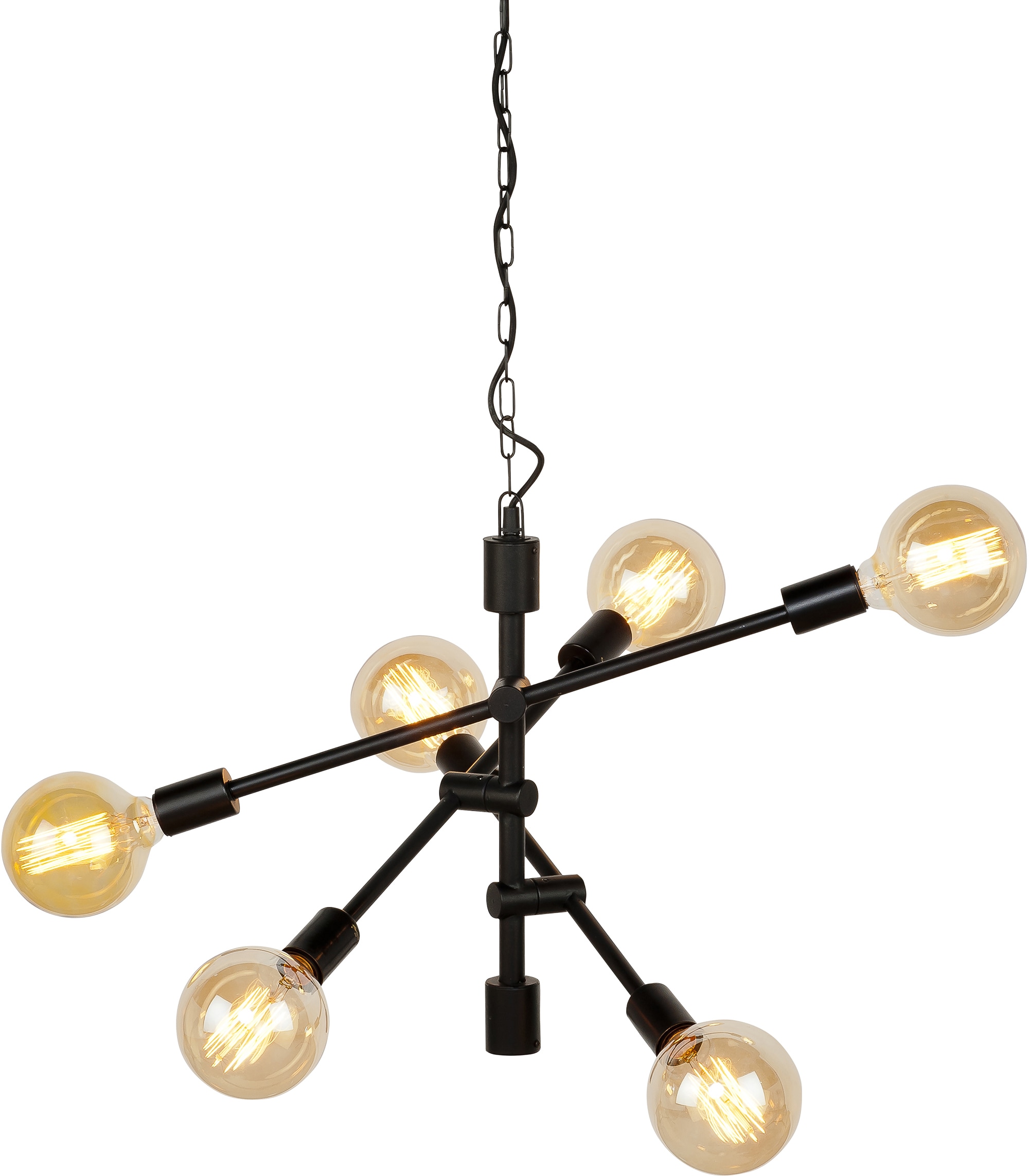 Die Pendelleuchte ist 3-armig und 6-flammig und jeder der Arme kann gedreht werden, bis sie sich gegenseitig im Weg stehen. Die Pendellampe kann gedimmt werden (Dimmer nicht im Lieferumfang enthalten). Mit freiem Blick auf die Leuchtmittel (nicht im Lieferumfang enthalten) ist diese hängende Deckenleuchte mit extra Befestigungskette ein Highlight in jedem Raum. Für jede Lampe, die wir verkaufen, wird ein Baum gepflanzt. Seit 2019 sind wir Partner von Eden Wiederaufforstungsprojekten. Sie pflanzen Bäume auf der ganzen Welt zum Zweck der Wiederaufforstung, der Agroforstwirtschaft und der Verringerung extremer Armut durch die Beschäftigung lokaler Dorfbewohner. MIT LIEBE ZUM DESIGN AUS AMSTERDAM: RoMi wurde 1993 gegründet und befindet sich heute in einer der ältesten Grachten in Amsterdam. Gut durchdachtes Design in reinen Materialien dafür steht das realistische und weltoffene Team.