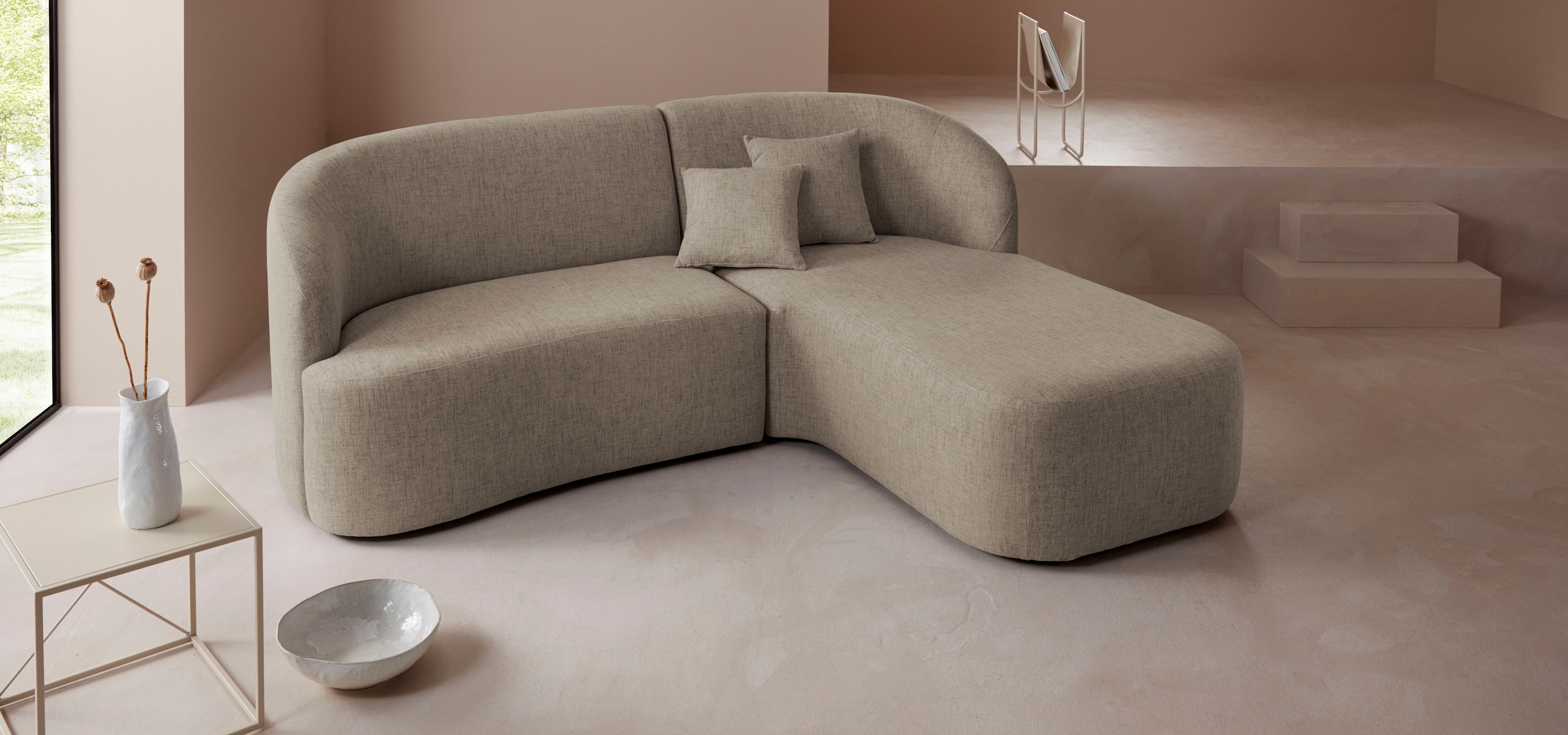 LeGer Home by Lena Gercke Ecksofa »Dilara L-Form« gerundete Rückenlehne und Front, in 3 Bezugsqualitäten