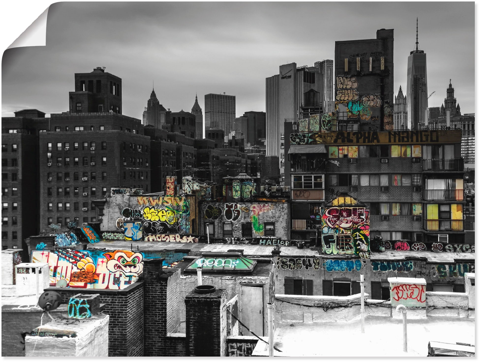 Unser mit Liebe in Handarbeit hergestelltes Wandbild mit dem Motiv Graffiti in New York von Kurt Krause überzeugt durch originalgetreue Druckqualität und hochwertige Basismaterialen. Das Motiv wird Dir wie abgebildet und fertig zum Aufhängen nach Hause geliefert.