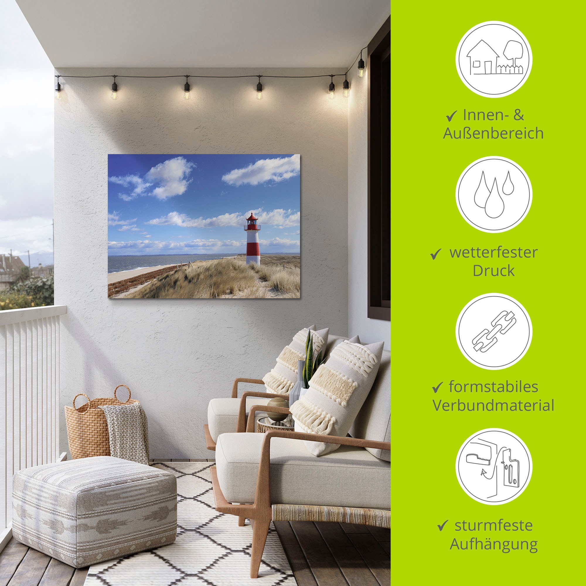 Mit viel Liebe für kunstvolles Wohnen verleiht unser Wandbild mit dem Motiv Leuchtturm Sylt von fotopro Deinem Zuhause Charakter. Es begeistert durch hochauflösende Druckqualität und hochwertige Materialien – Made in Germany.