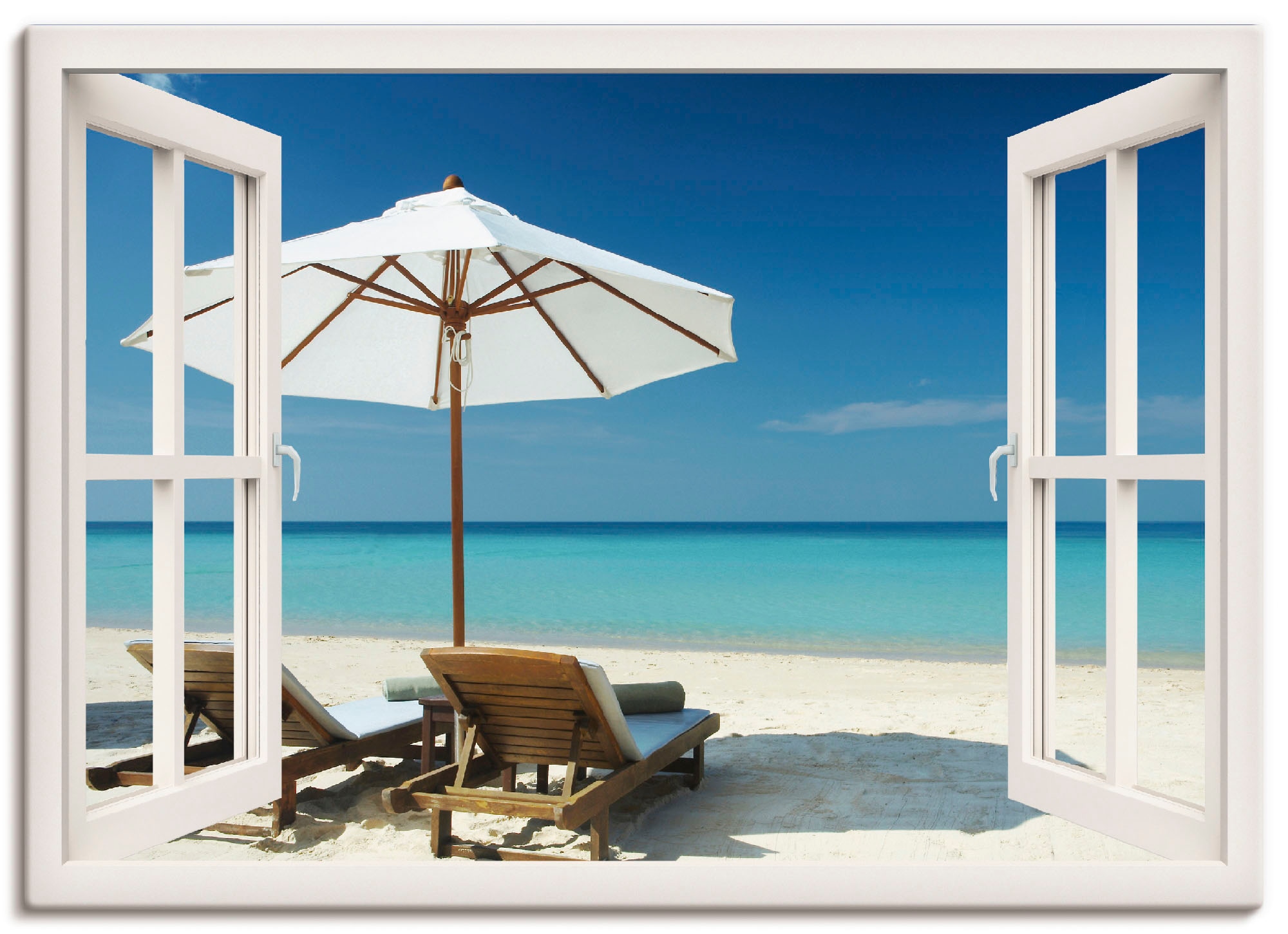 Artland Wandbild »Fensterblick - Zwei Liegestühle« Fensterblick 1 Stk. tlg. als Leinwandbild, Wandaufkleber in verschied. Größen