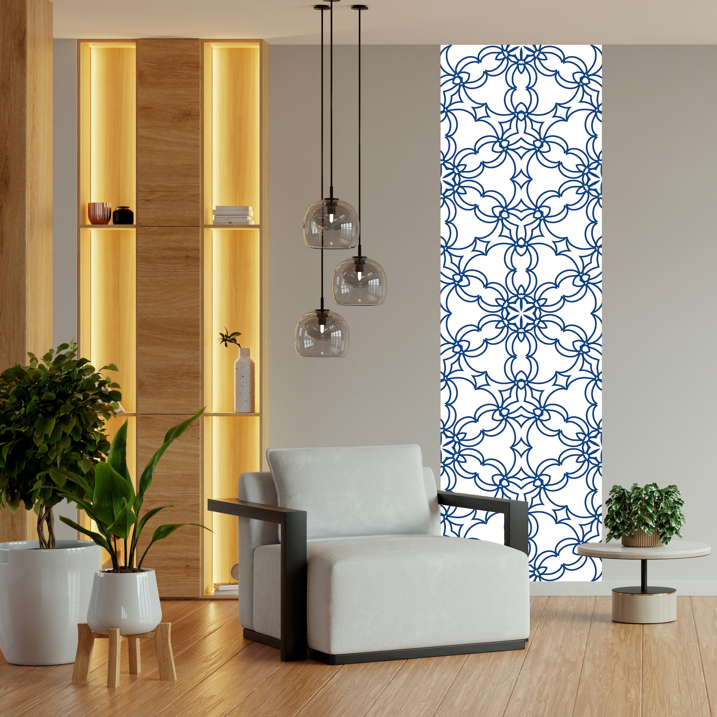 queence Vinyltapete »Muster-Blau« Farbverlauf | abstrakt | bedruckt | gemustert glatt 90x250cm, selbstklebend, kinderleichte Anbringung, , Sticker