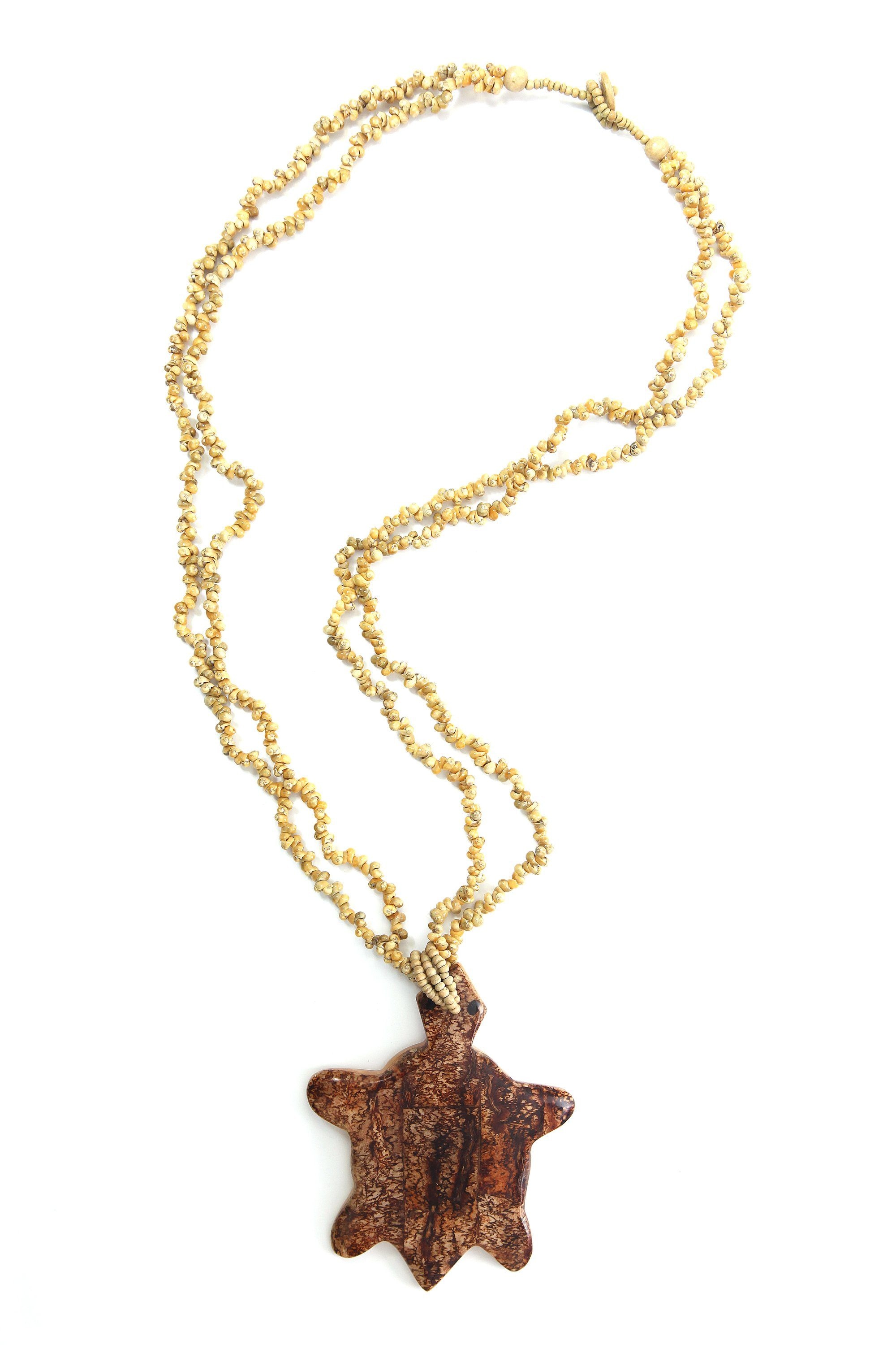 In opulenter Optik. Aus verschiedenen Holzelementen und dekorativem Anhänger. Mit verschieden geformten Perlen aus Holz und in liebevoller Handarbeit reflektiert hergestellt. Erhältlich in den Farben grau und natur. Jedes Stück ein Unikat.