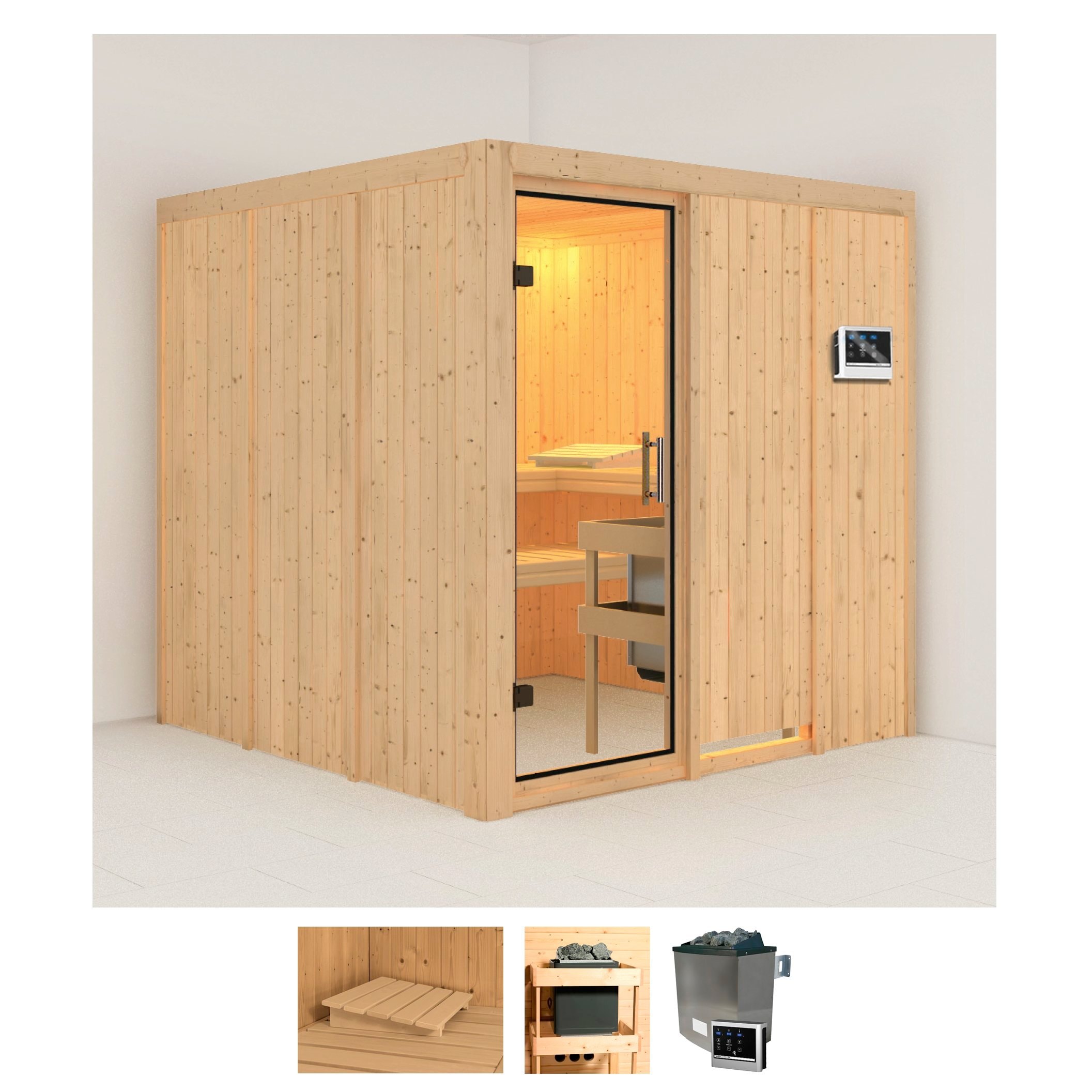 Karibu Sauna »Marit« Set, Ofen 9 kW Bio externe Strg easy