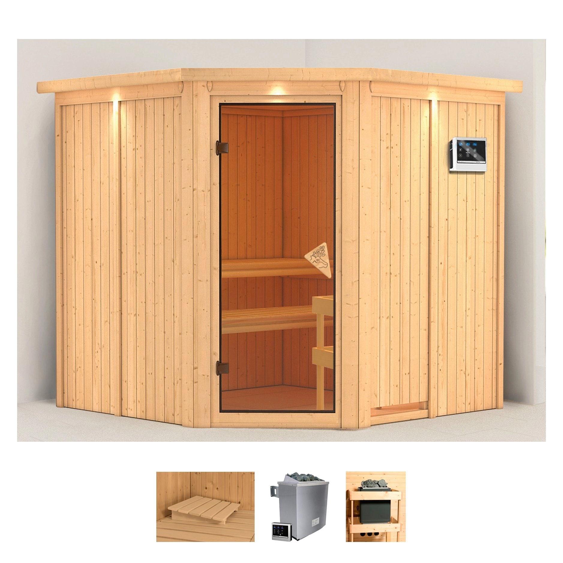 - Inkl. Ofenschutzgitter, Natur-Saunasteine und Kopfstütze Clasic