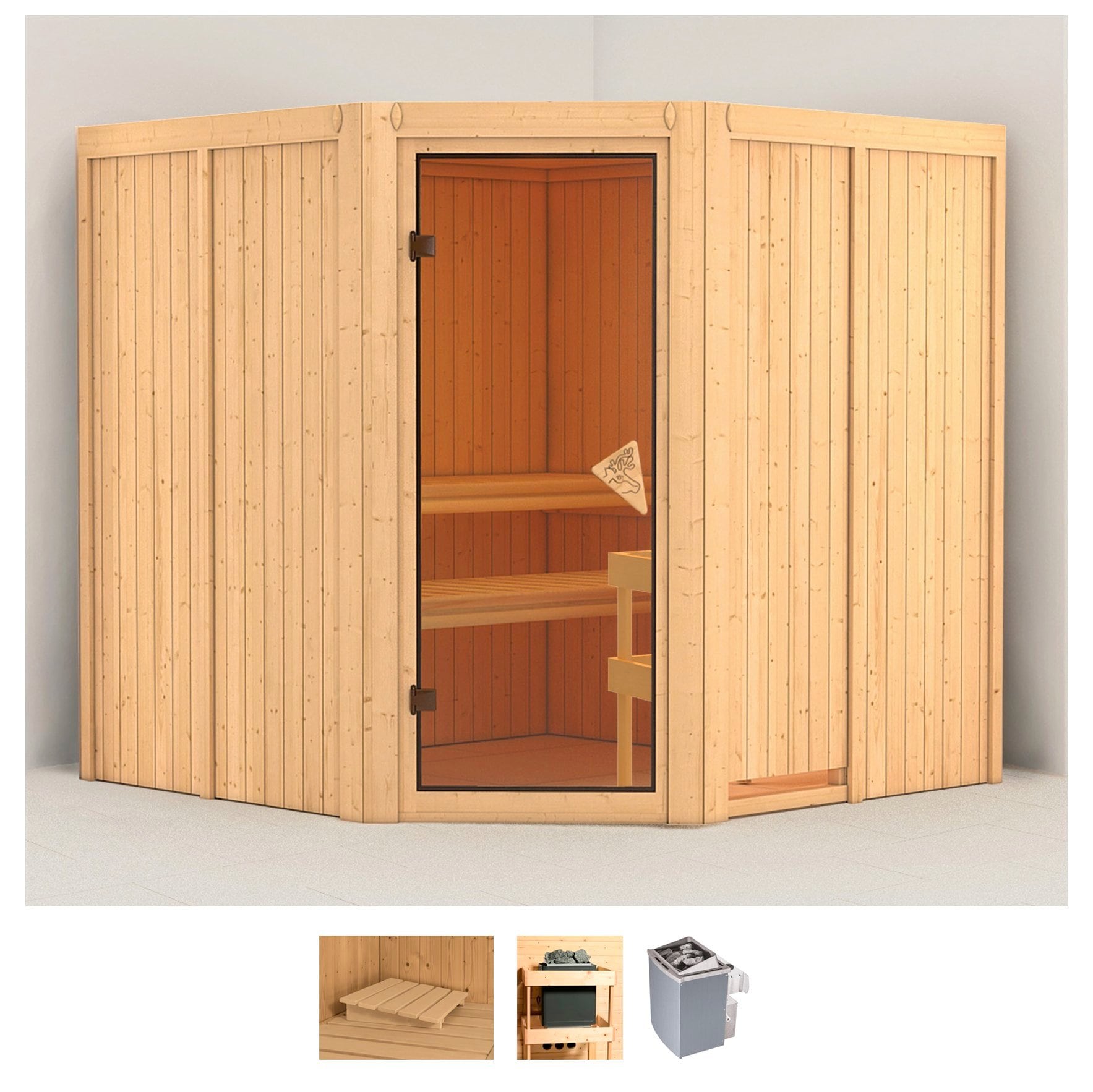 Lieferumfang | Ofenschutzgitter;Türgriff;Natur-Saunasteine;Kopfstütze »Classic« |